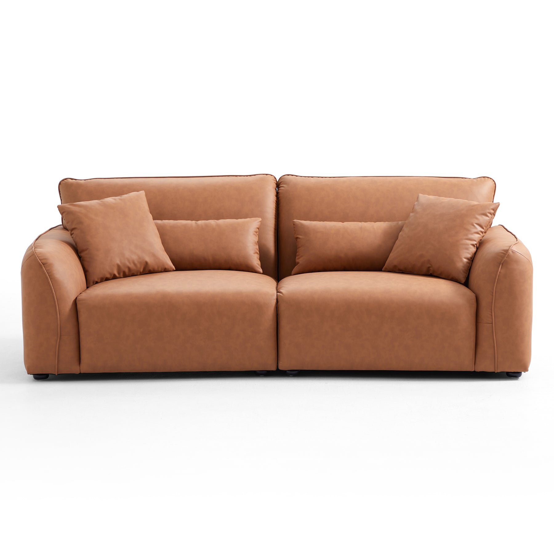 Material: larch wood sofa frame, high density foam, feather, Leathaire, Solid Wood Legs