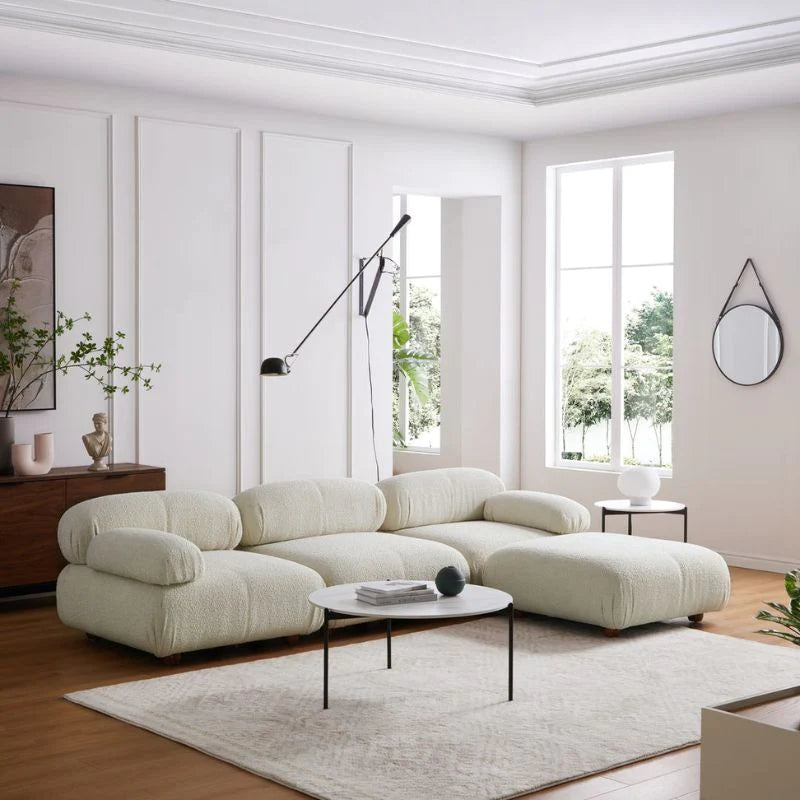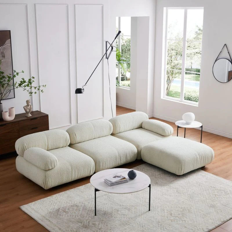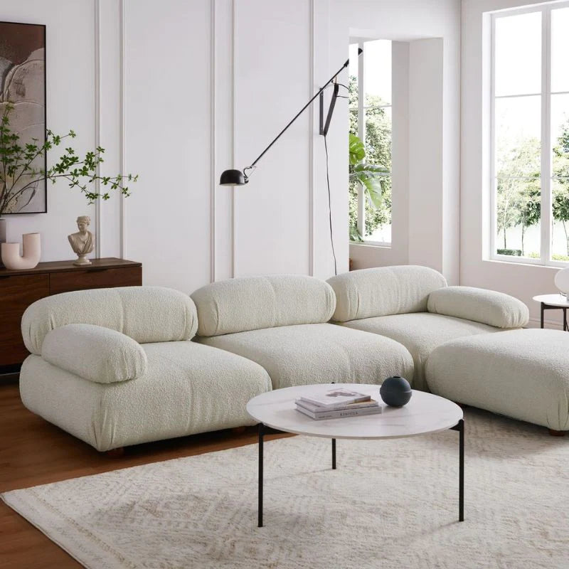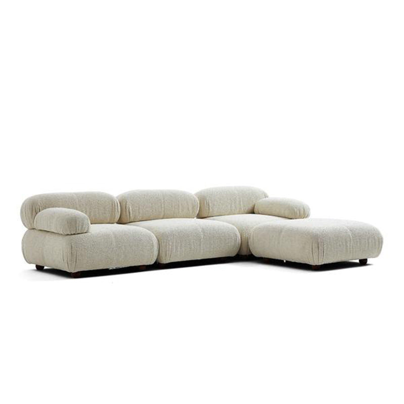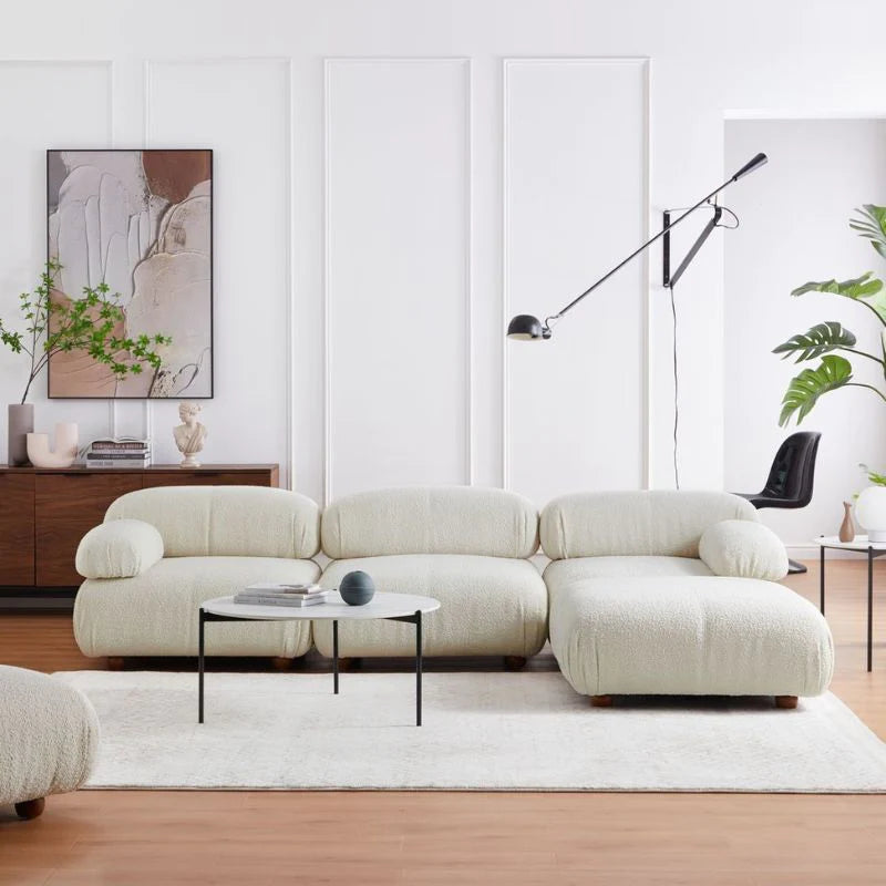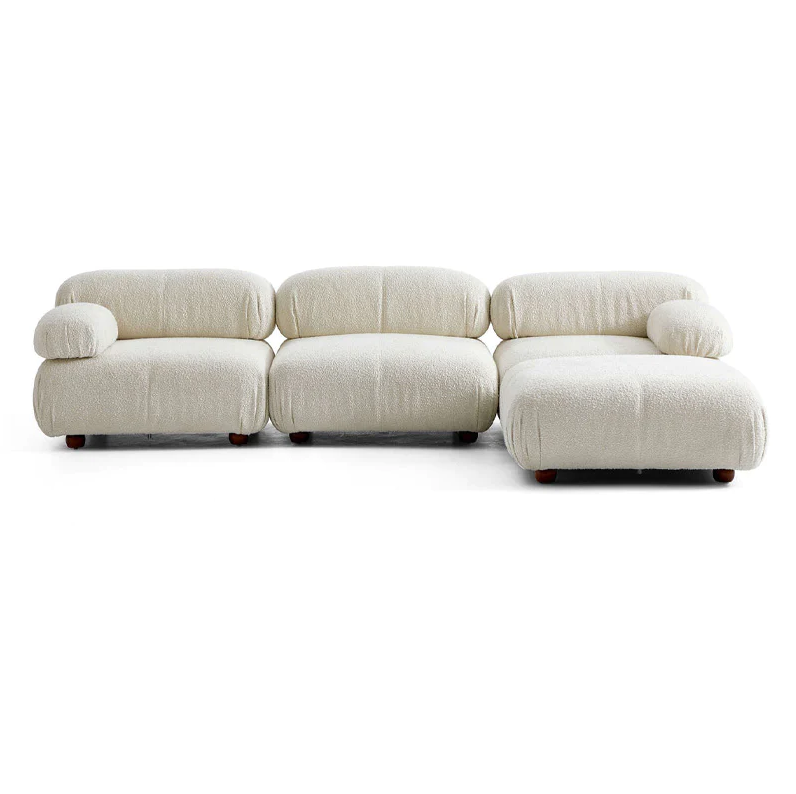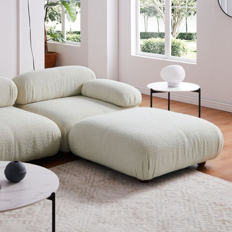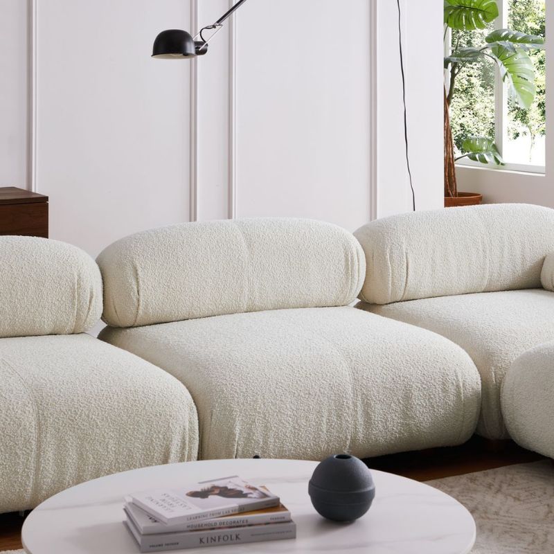 Material: solid wood sofa frame, high density foam,boucle fabric covering,wooden leg