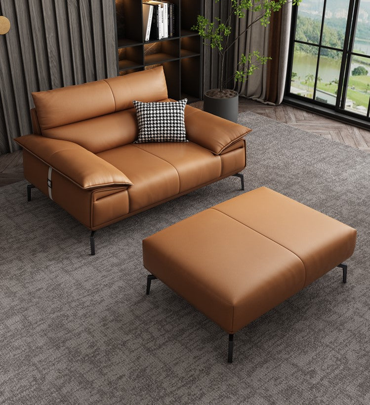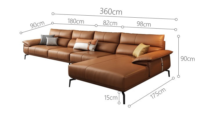 Material: solid wood sofa frame, high density foam, genuine leather & PU covering