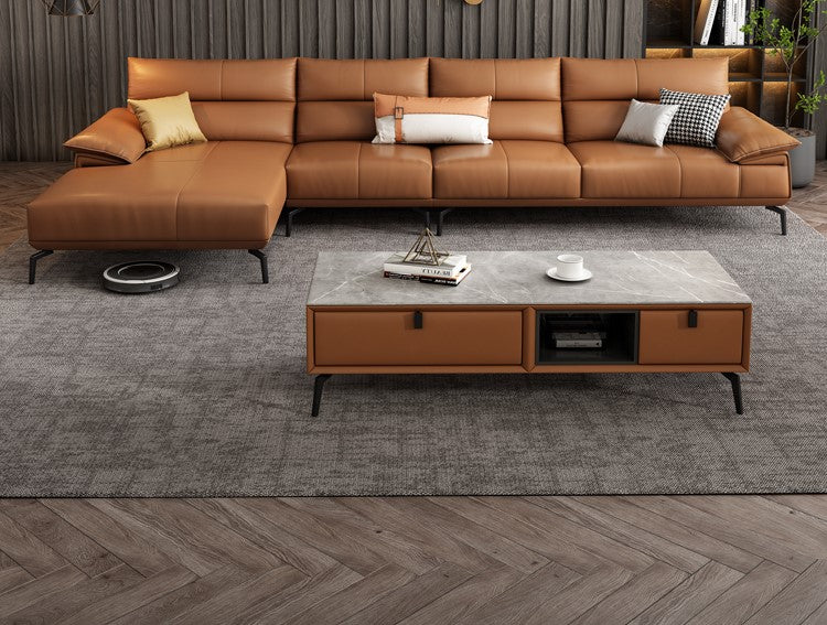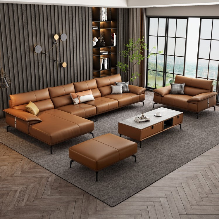Indoor Living Room Genuine Leather Sectional Sofas Set