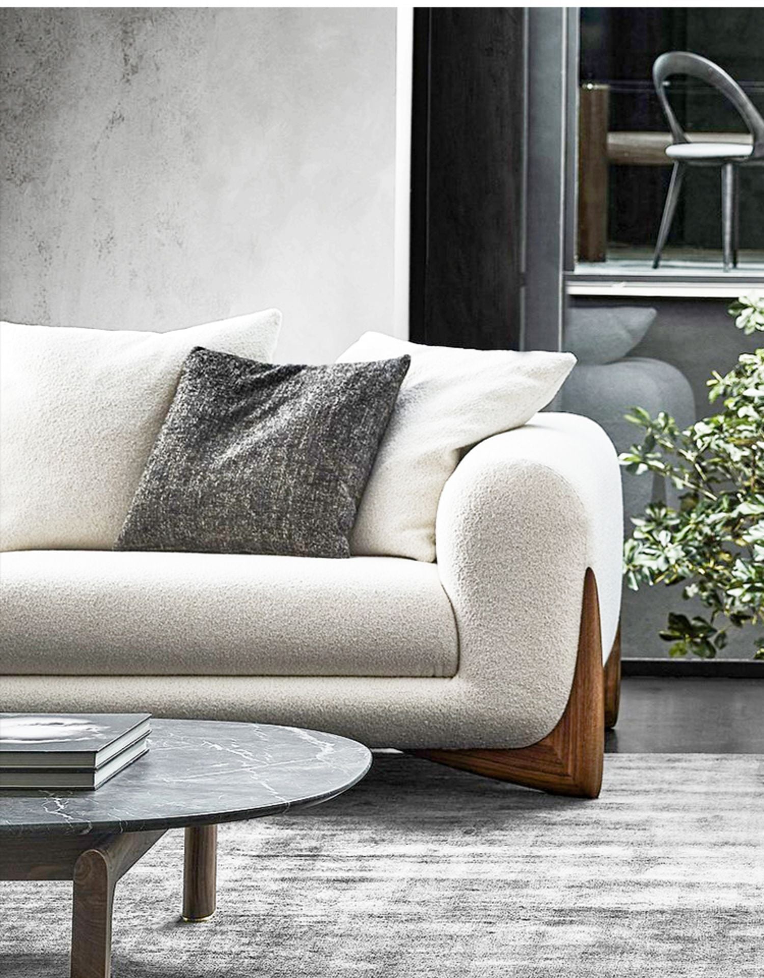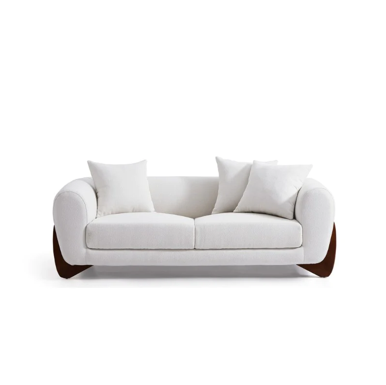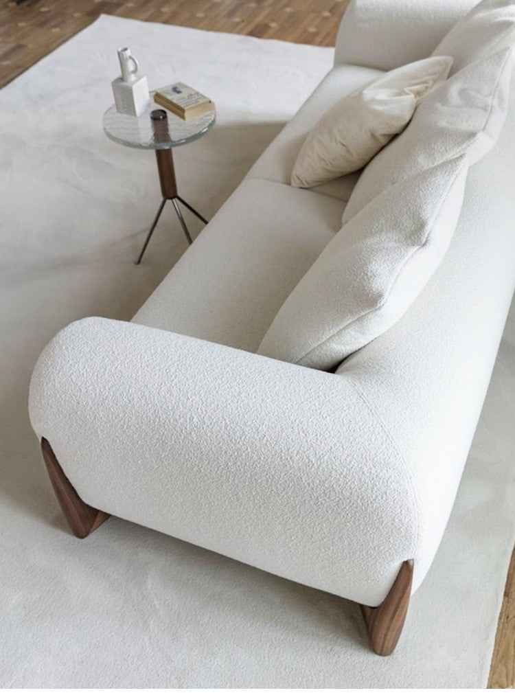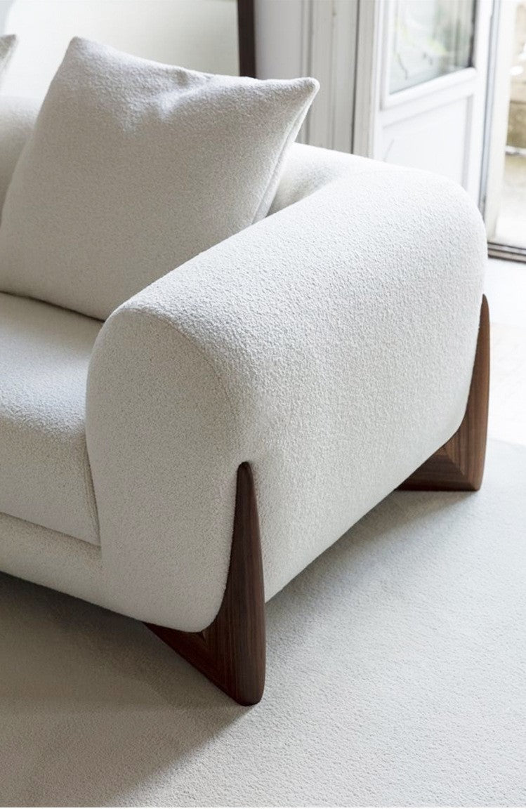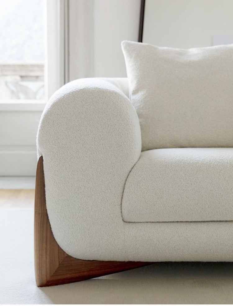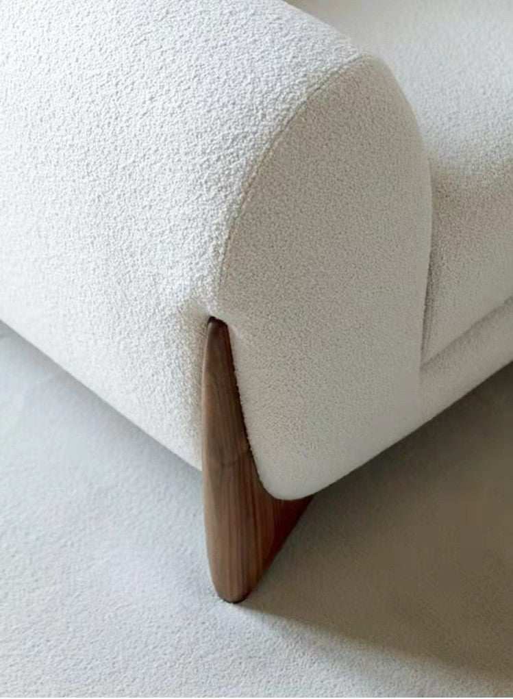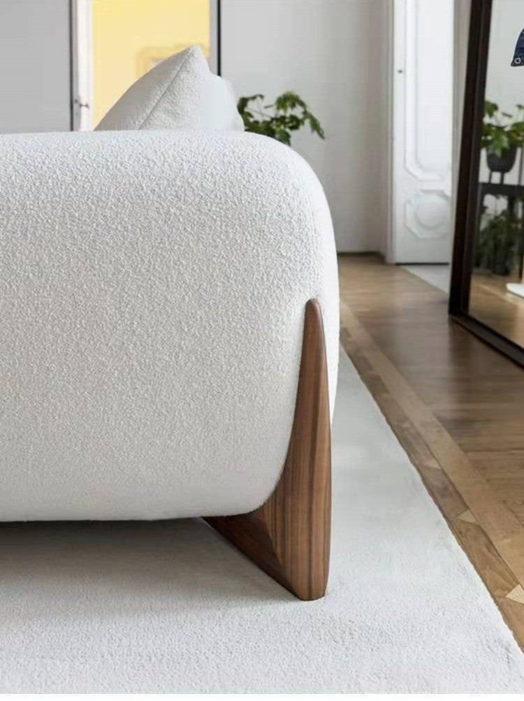Material: solid wood sofa frame, high density foam , boucle fabric covering,solid wood sofa leg