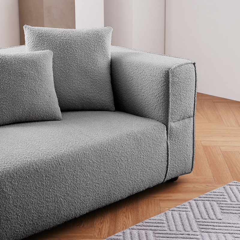 Material: pine wood sofa frame,high desity foam,boucle fabric covering, solid wood legs