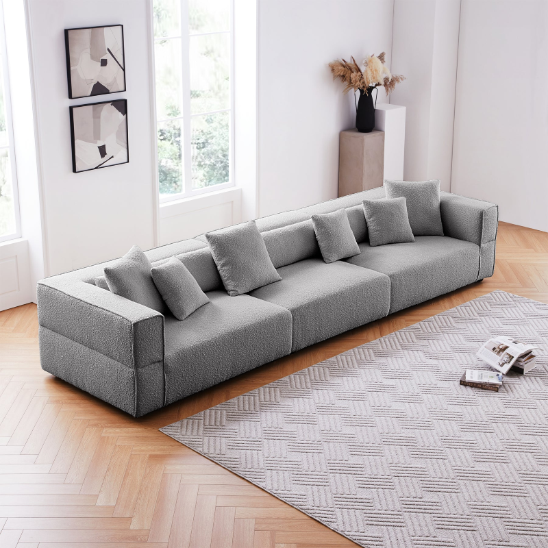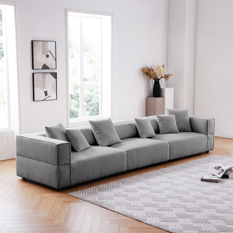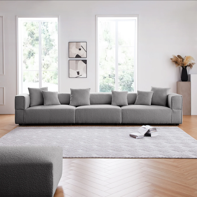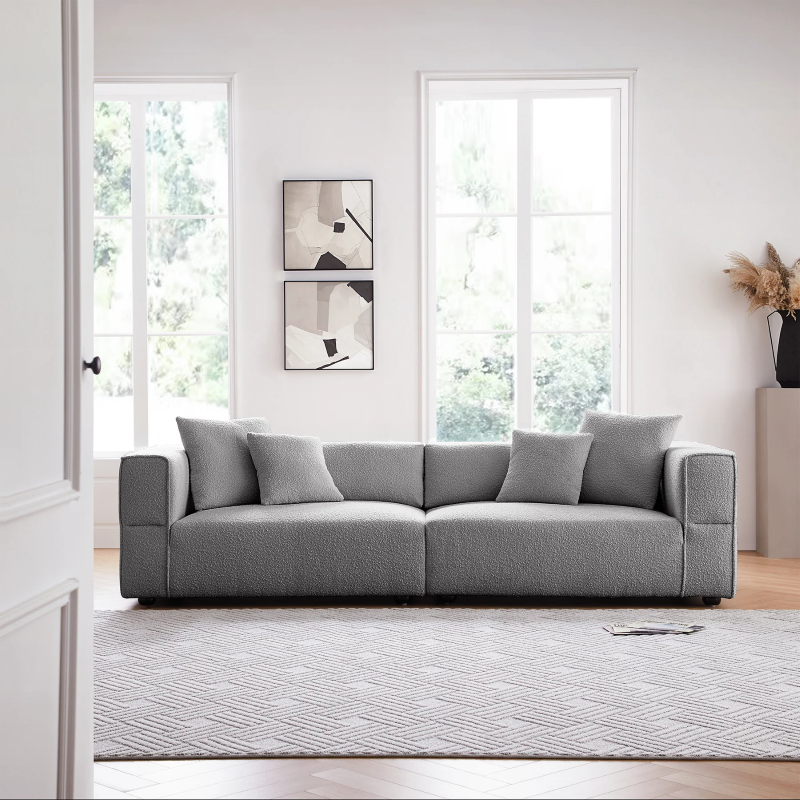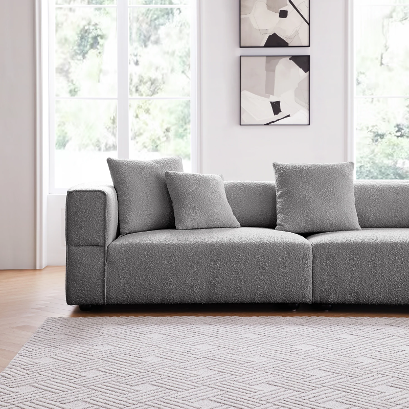 4- Seater Modern Boucle Sofa Grey