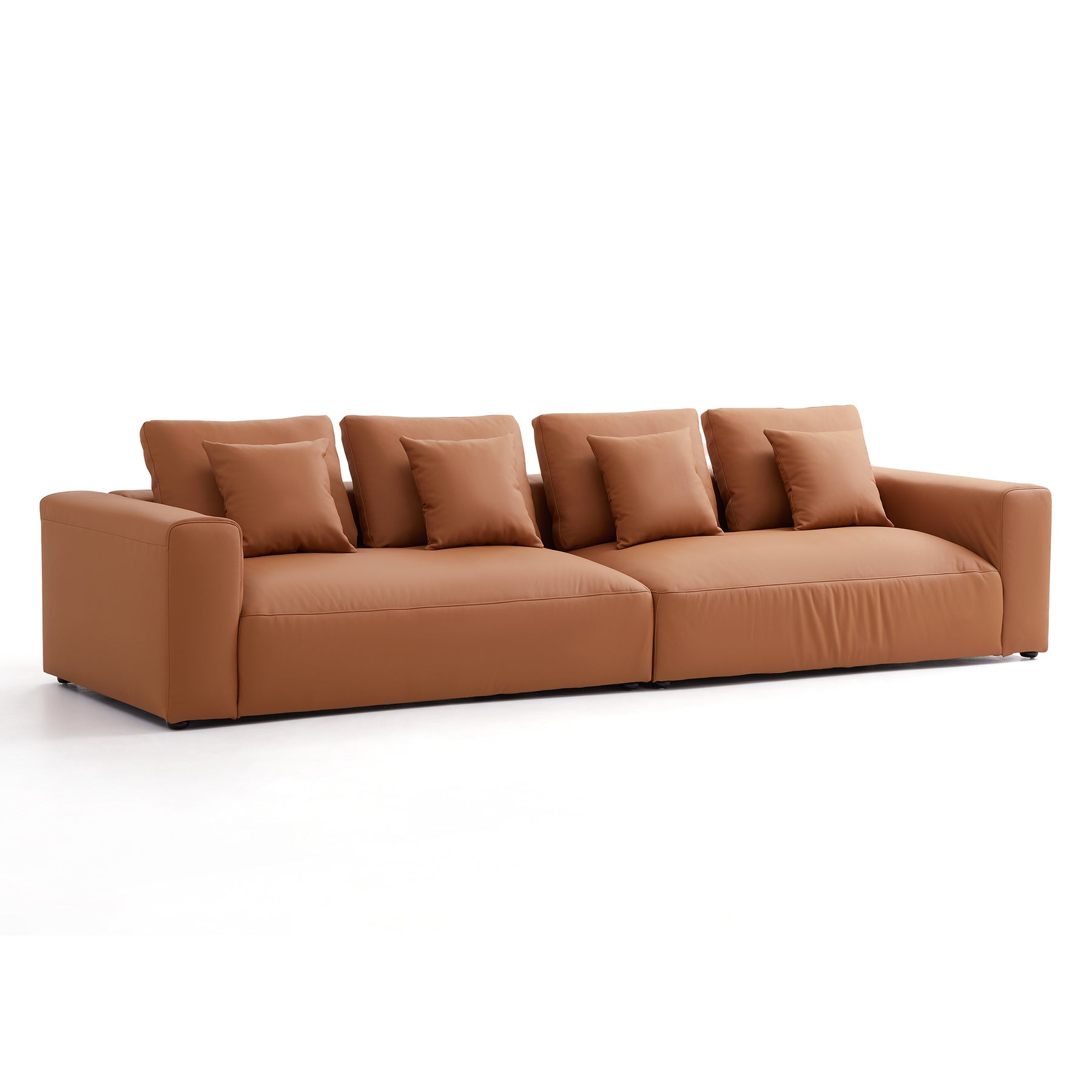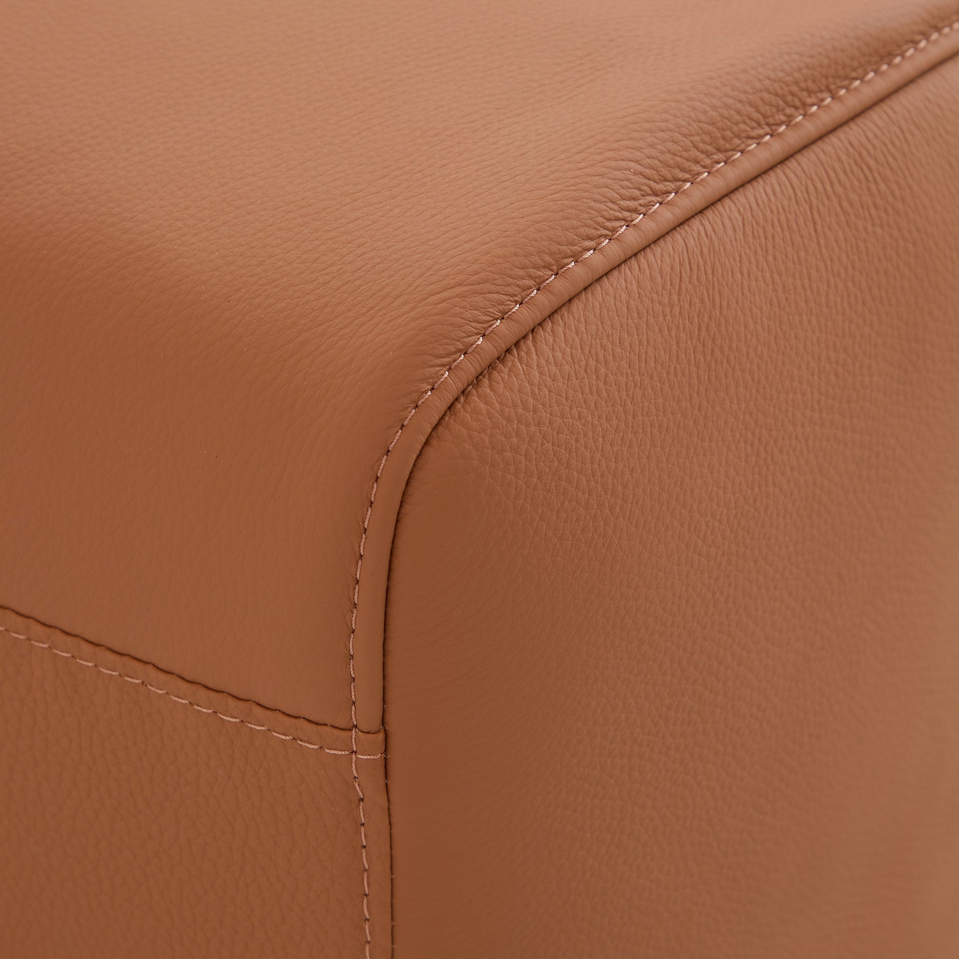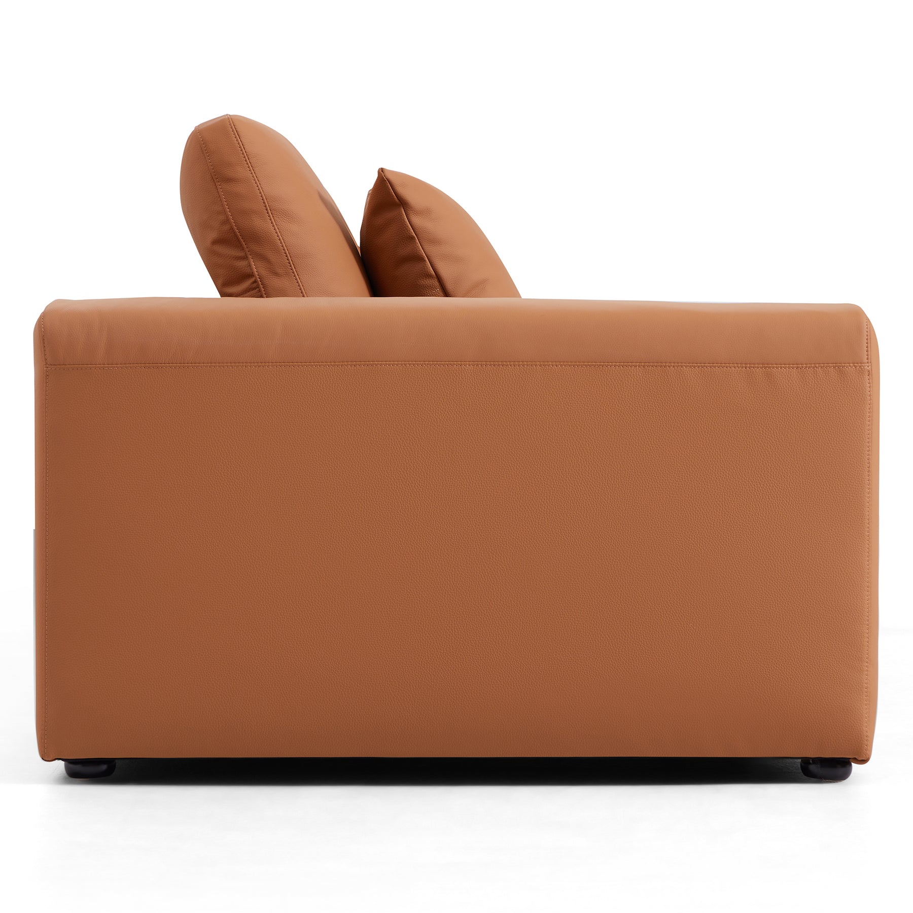 Material: pine wood frame, doll cotton+ soft feather+high density foam, top grain genuine Leather covering, wooden legs