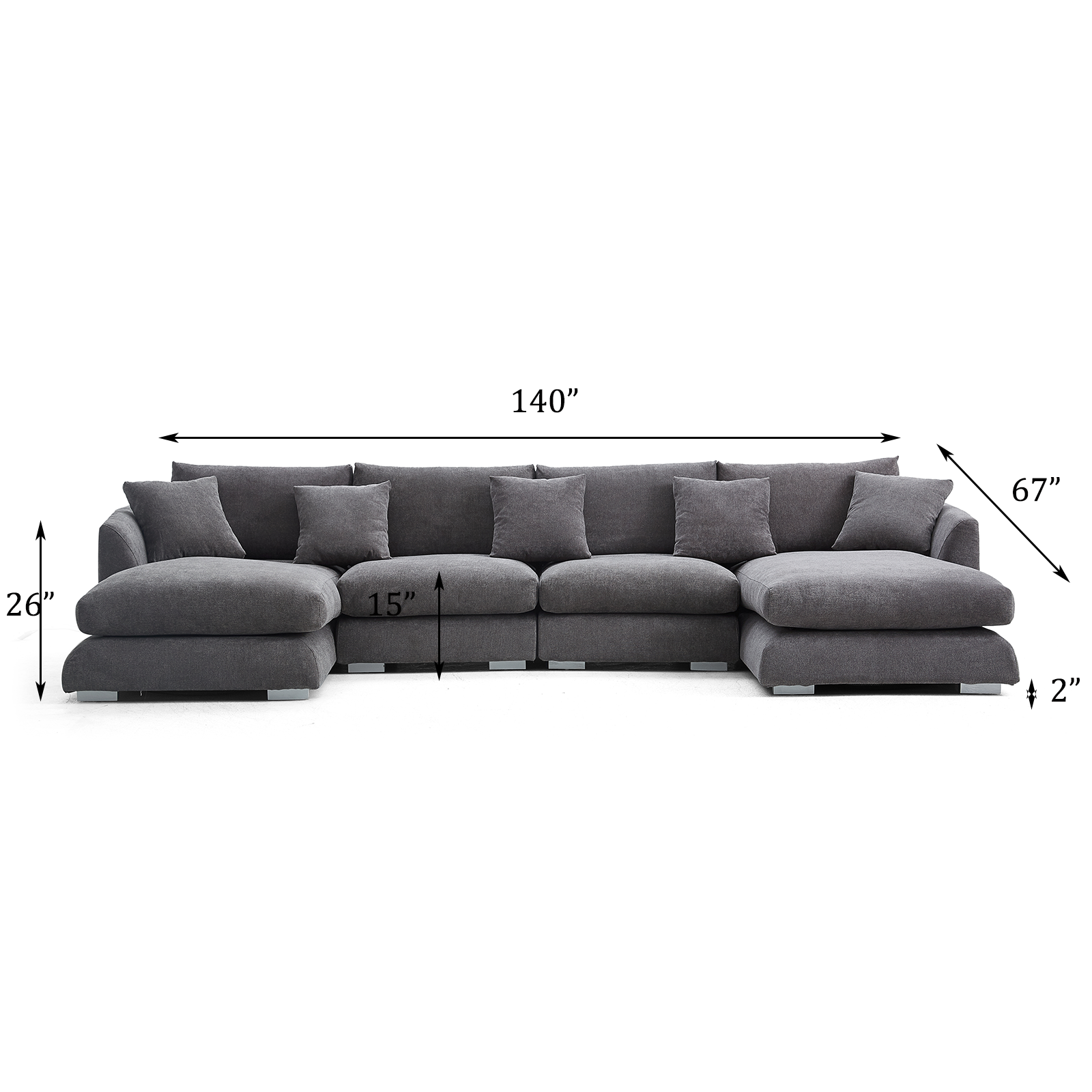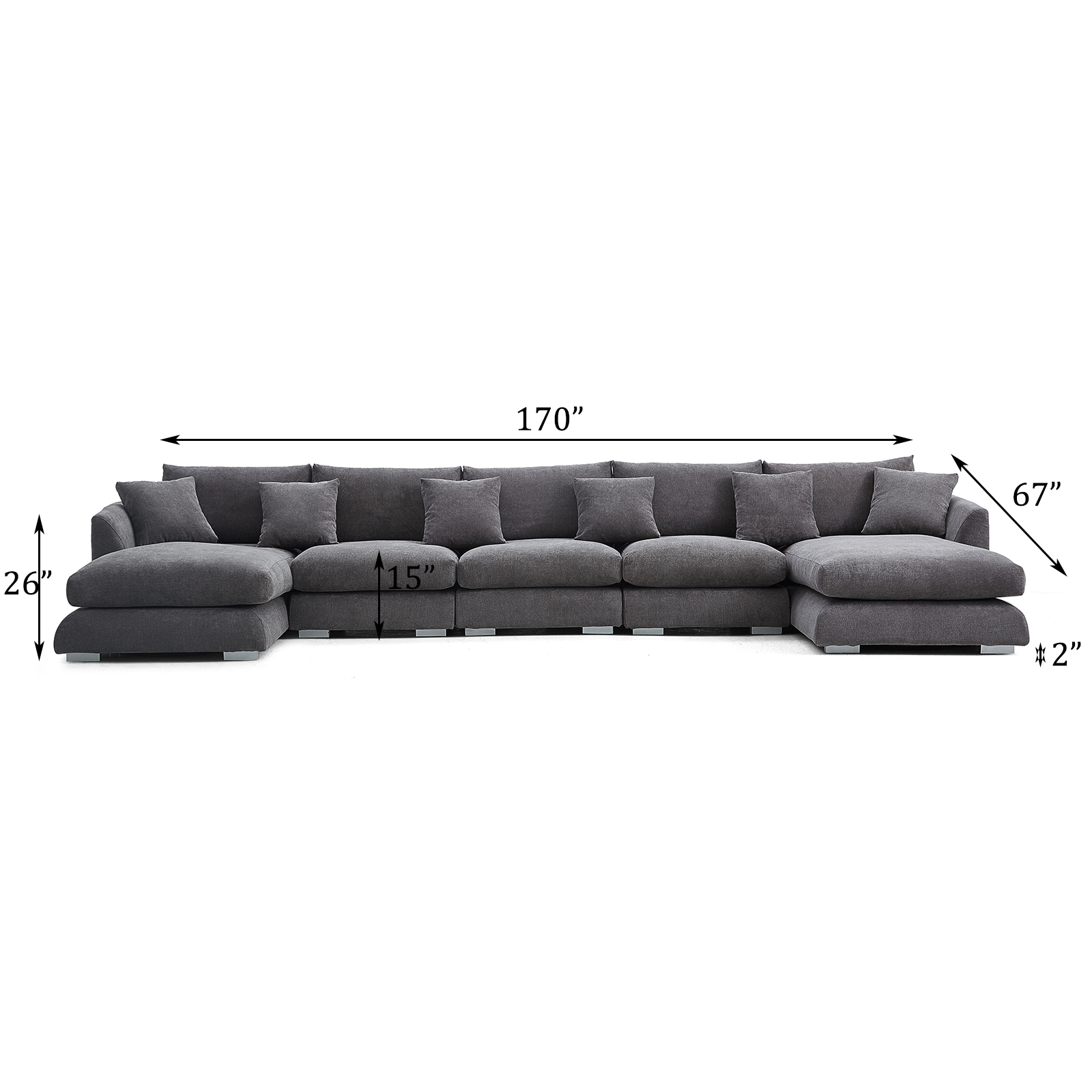 Aalto Fresh Grey Upholstered U-Shaped Sectional Sofa