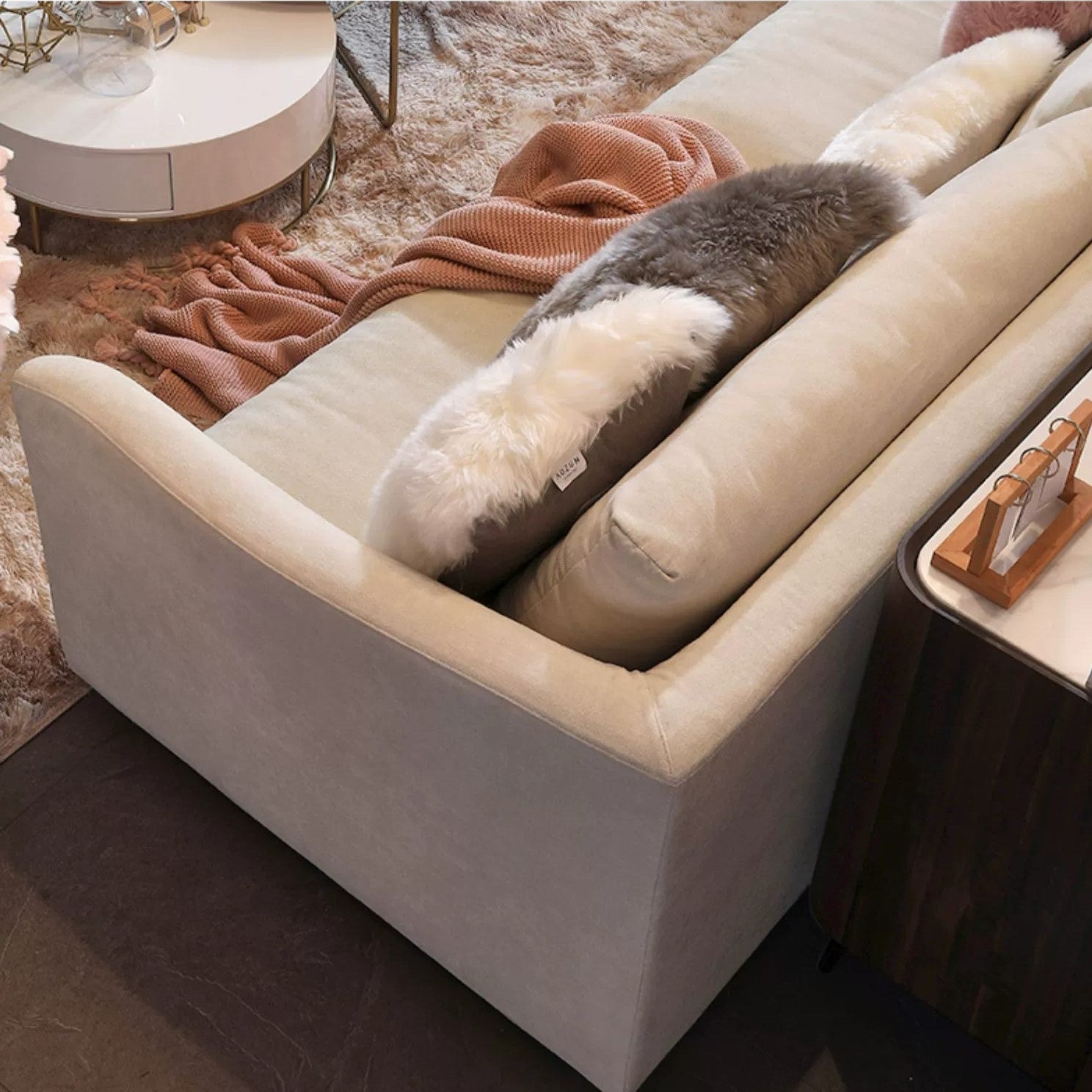 Material: Linen Fabric Upholstery+Solid Wood Frame+Foam and Feather