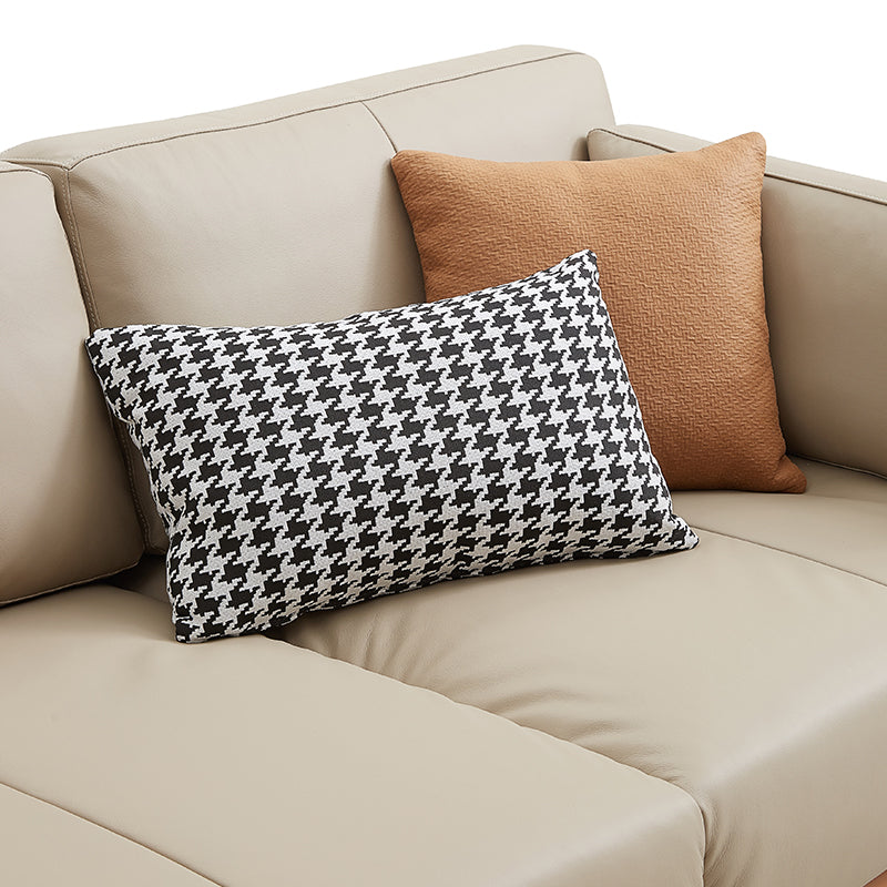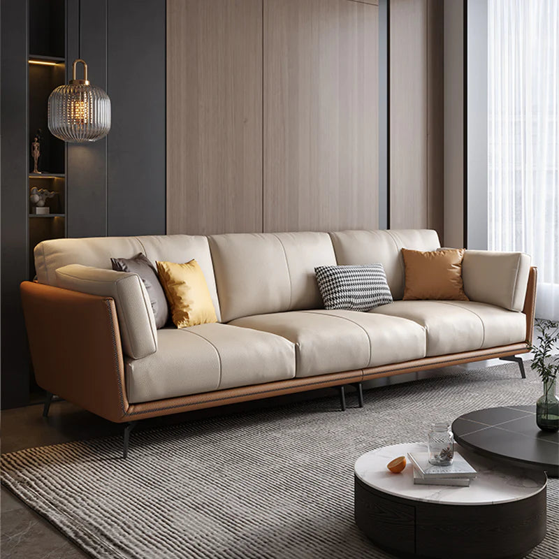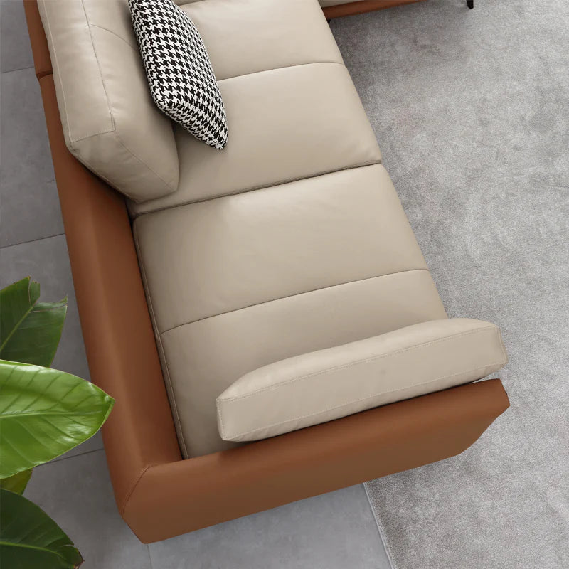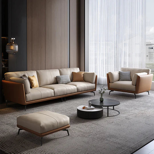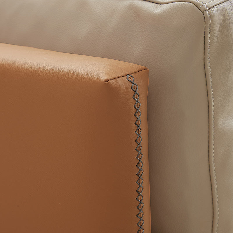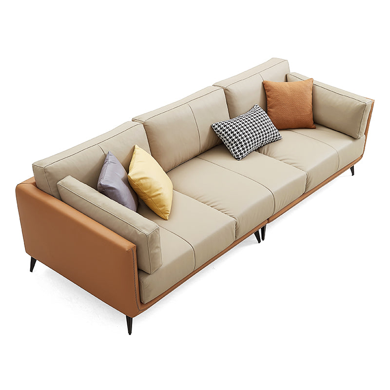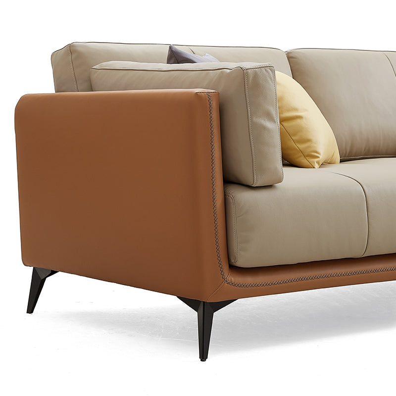 Material: solid wood sofa frame, high density foam and soft feather, genuine leather covering,metal leg