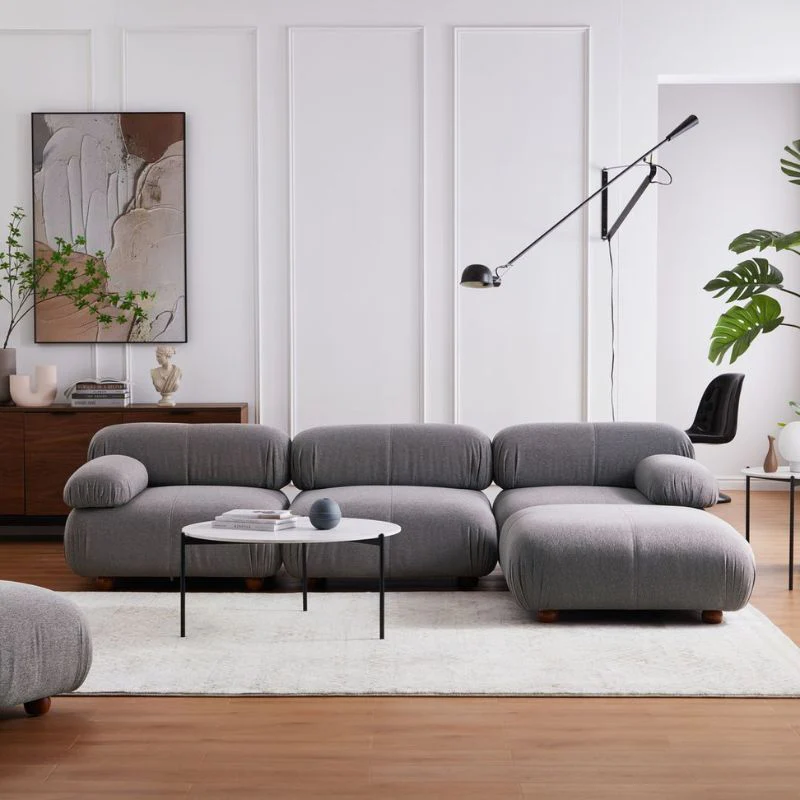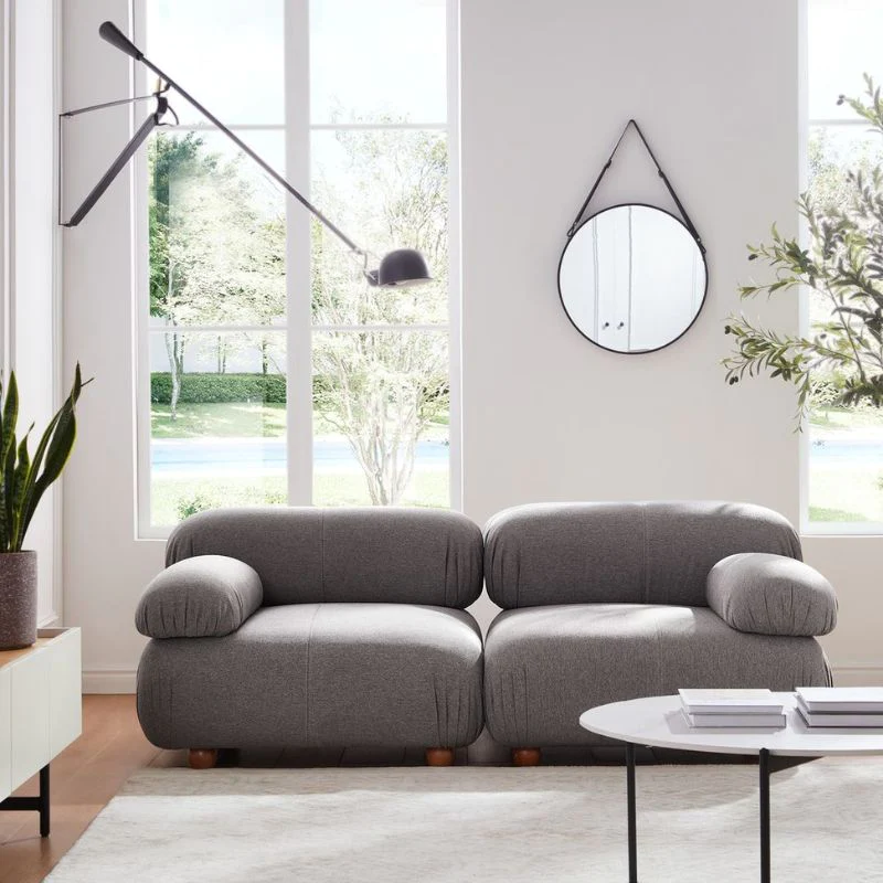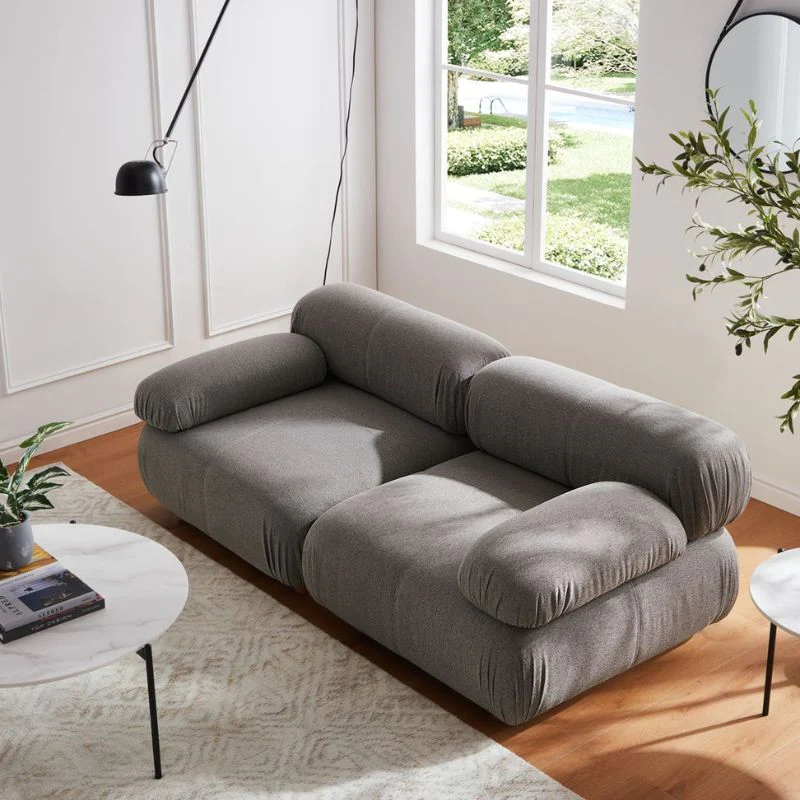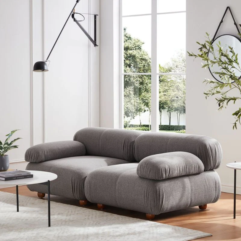 Material: solid wood sofa frame, high density foam,boucle fabric covering,wooden leg