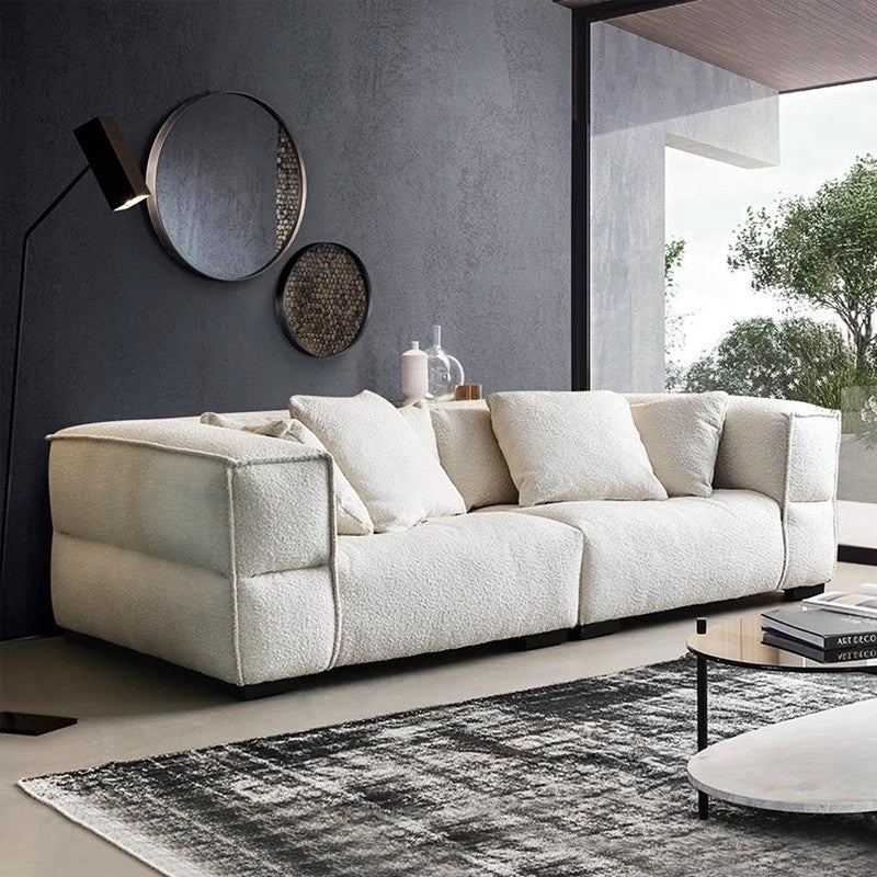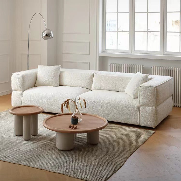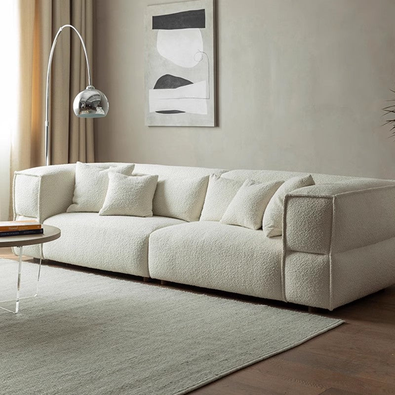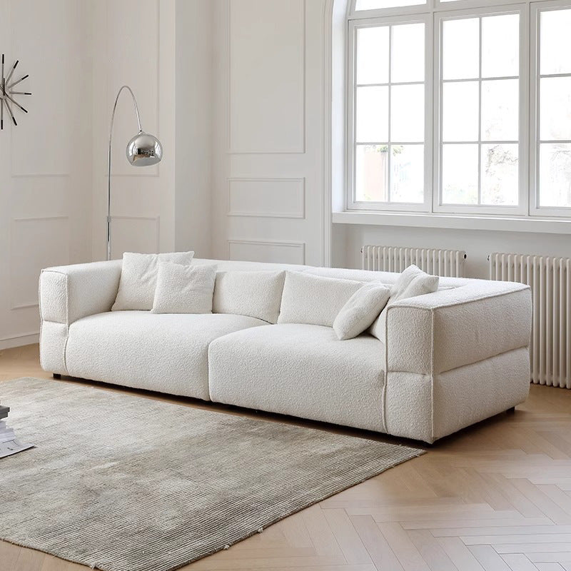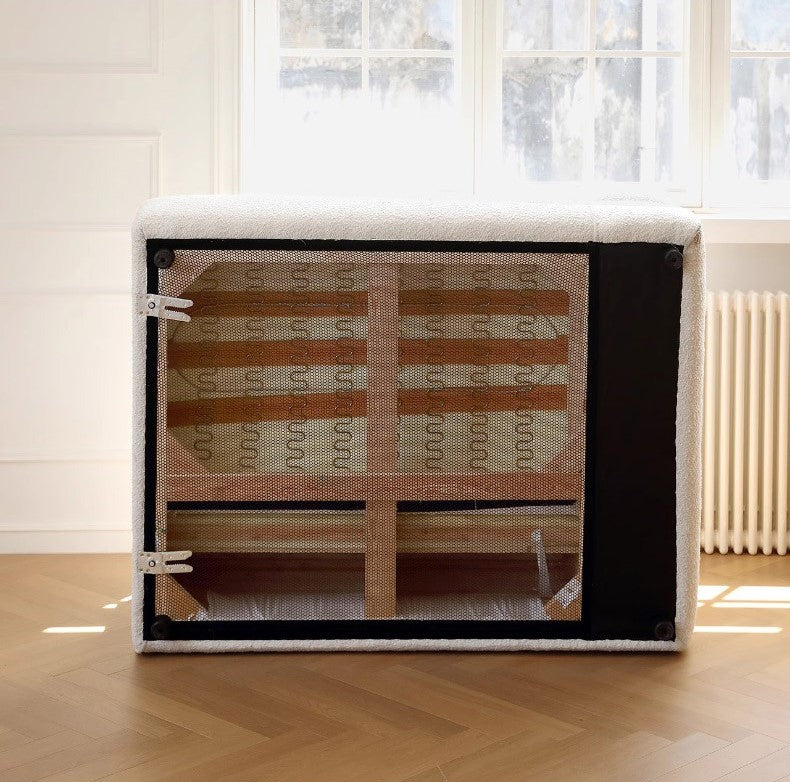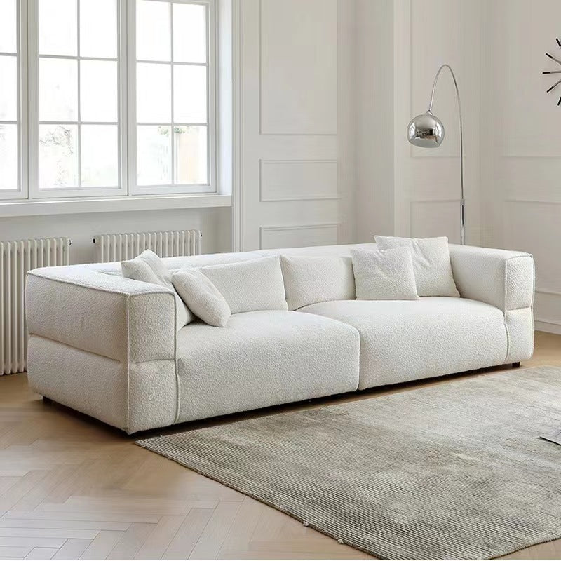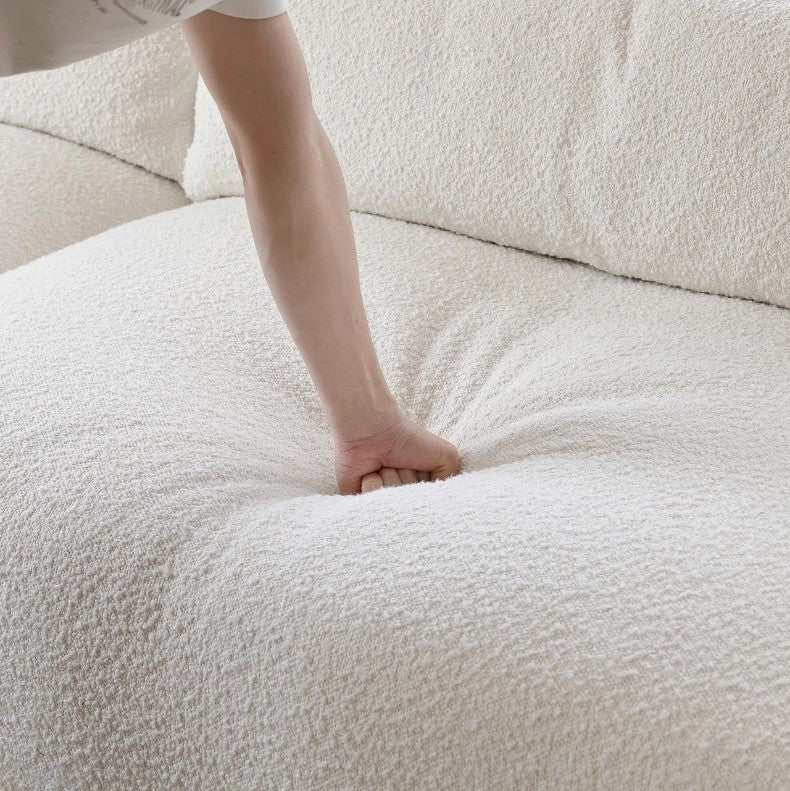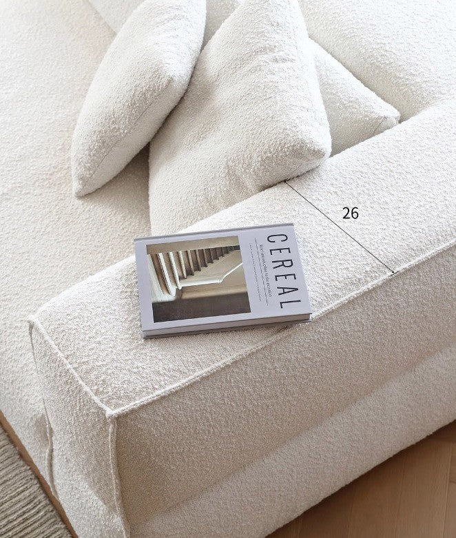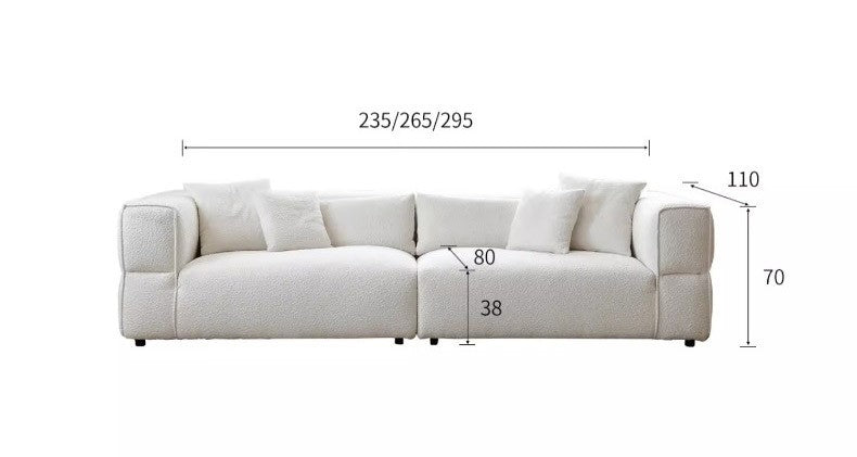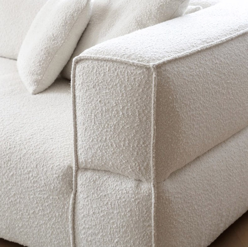Material: pine wood sofa frame,high desity foam,boucle fabric covering, solid wood legs