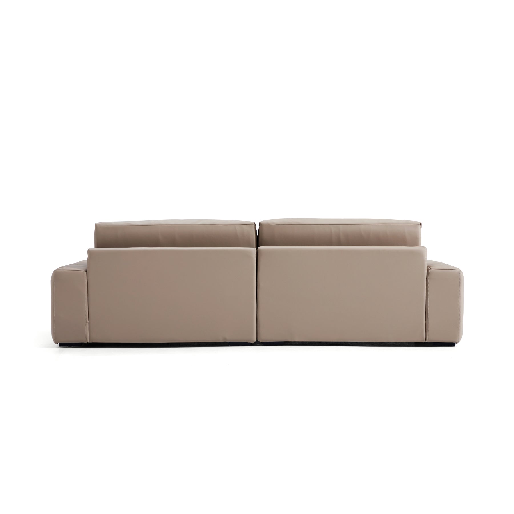 Material: larch wood frame, high density foam, feather, Genuine leather