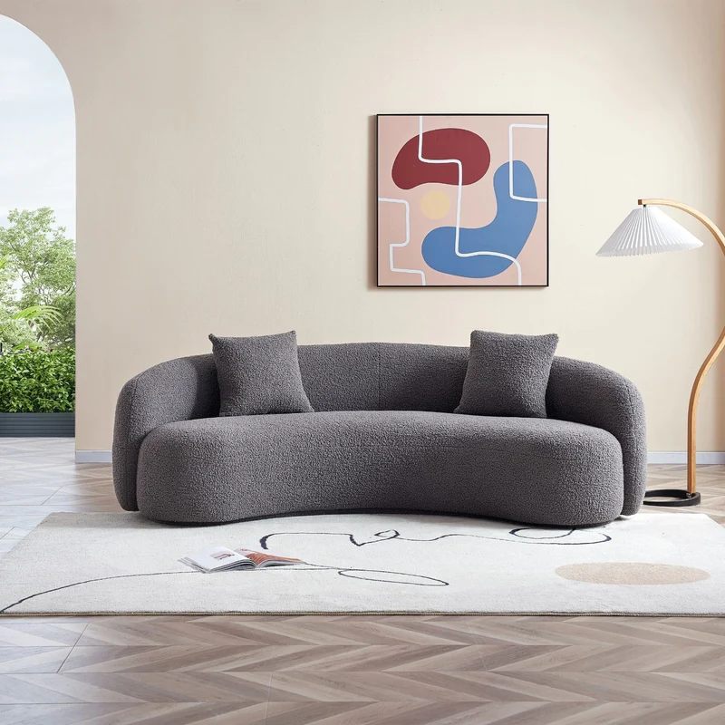 Material: solid wood sofa frame, high density foam and soft feather, boucle fabric covering