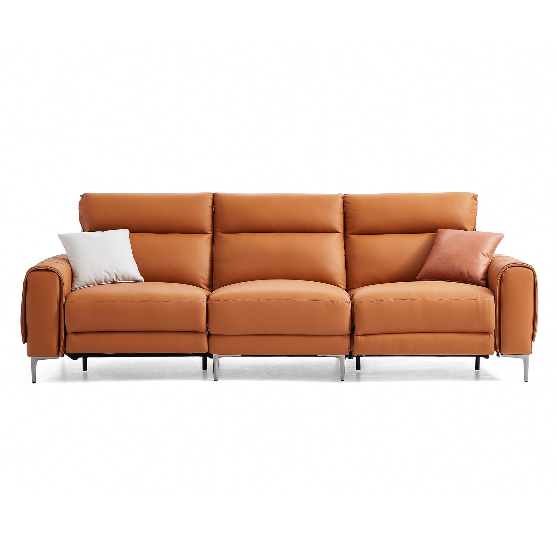 Material: Power recliner sofa+USB charging, solid wood sofa frame, high density foam+feather, top grain genuine leather covering, rust-resistant metal legs
