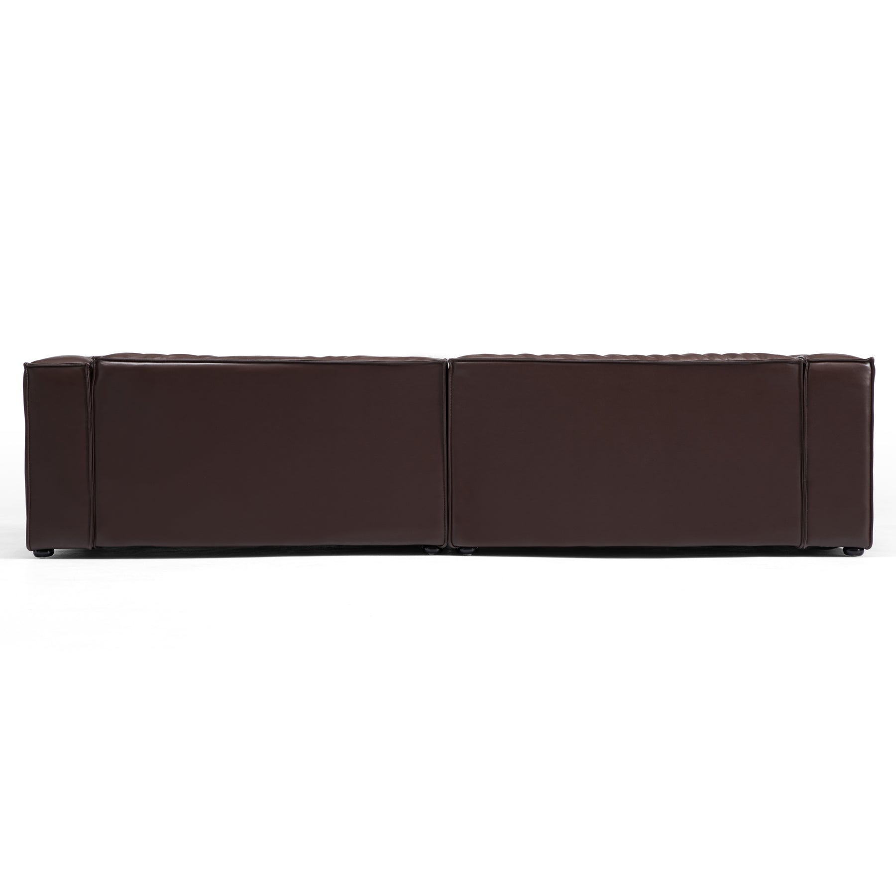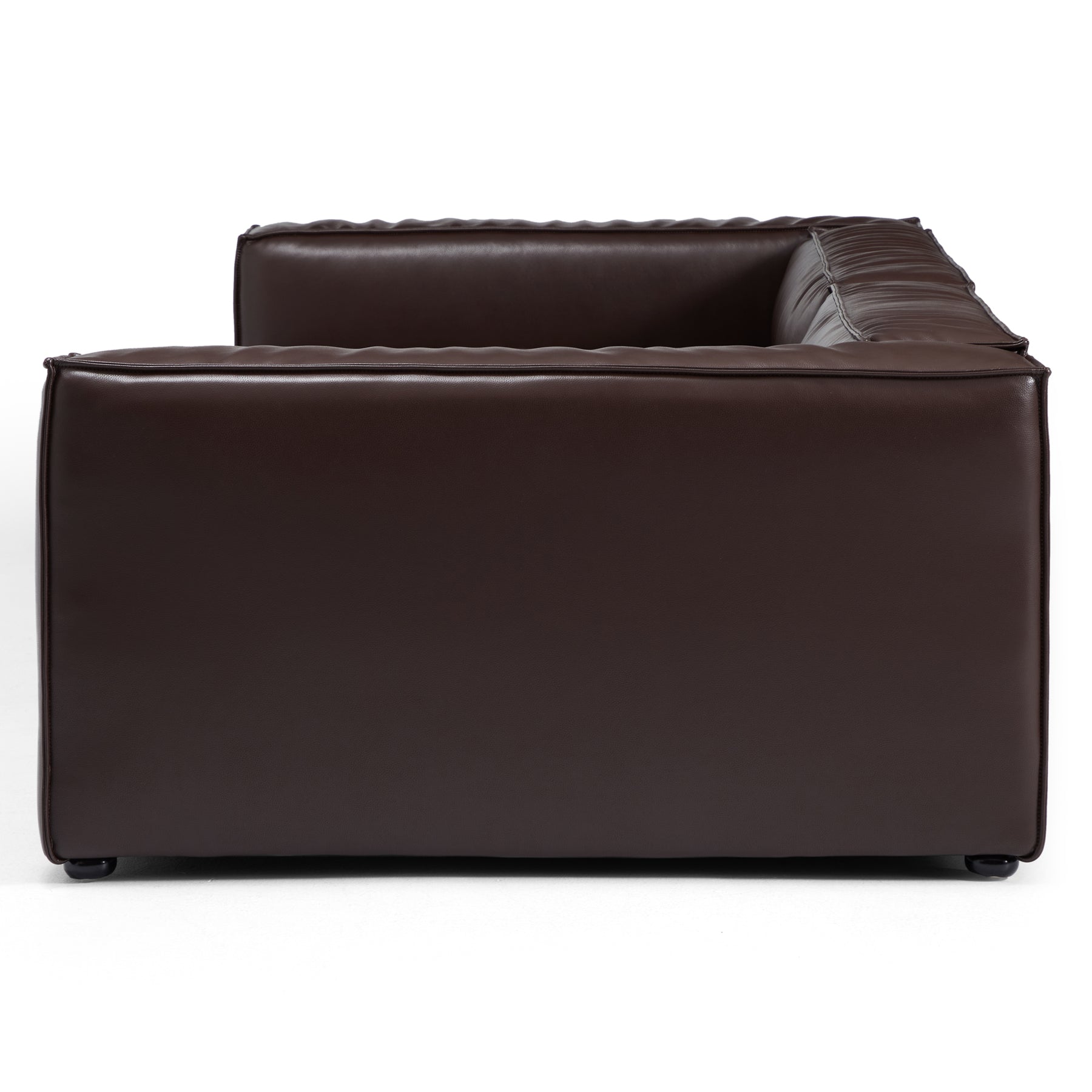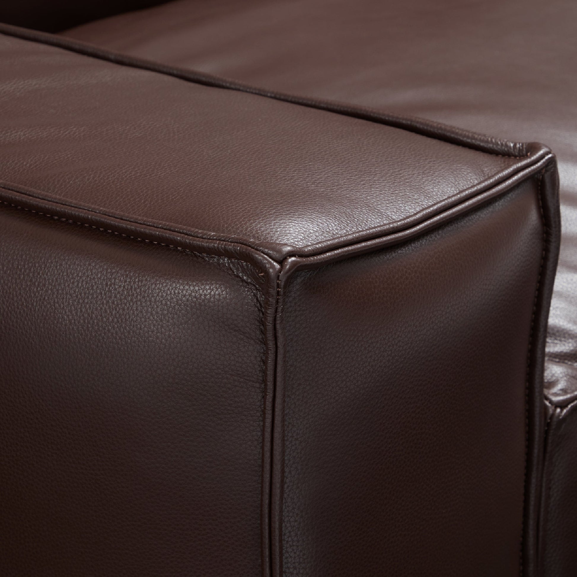 Wooden frame upholstery brown genuine leather double chaise sofa bed
