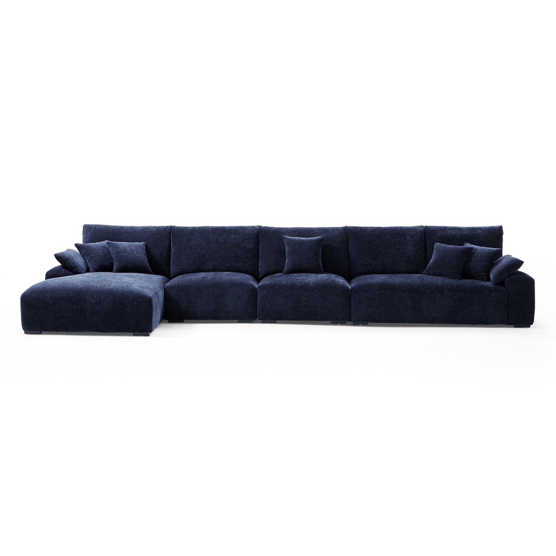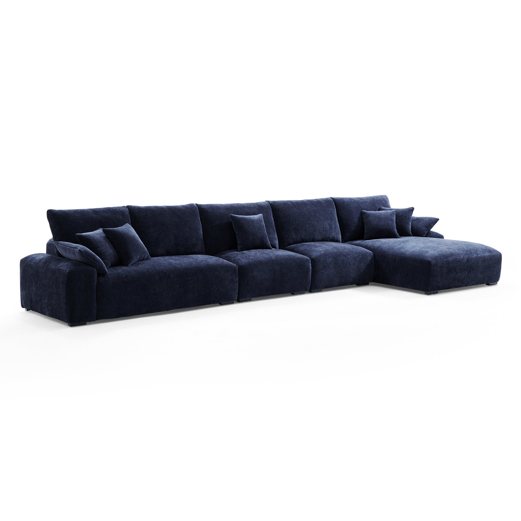 Living room blue chenille velvet cloud L shape sectional sofas