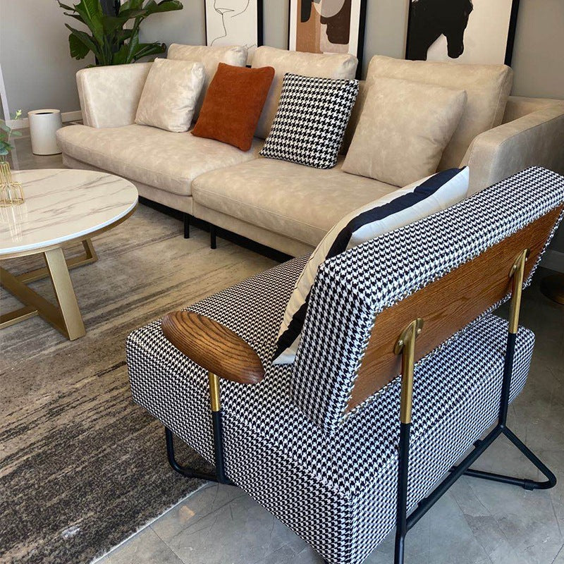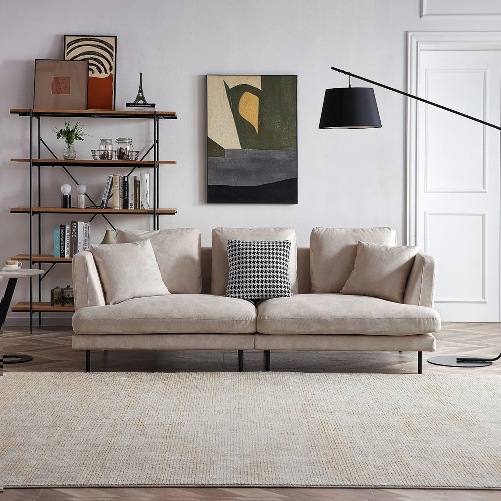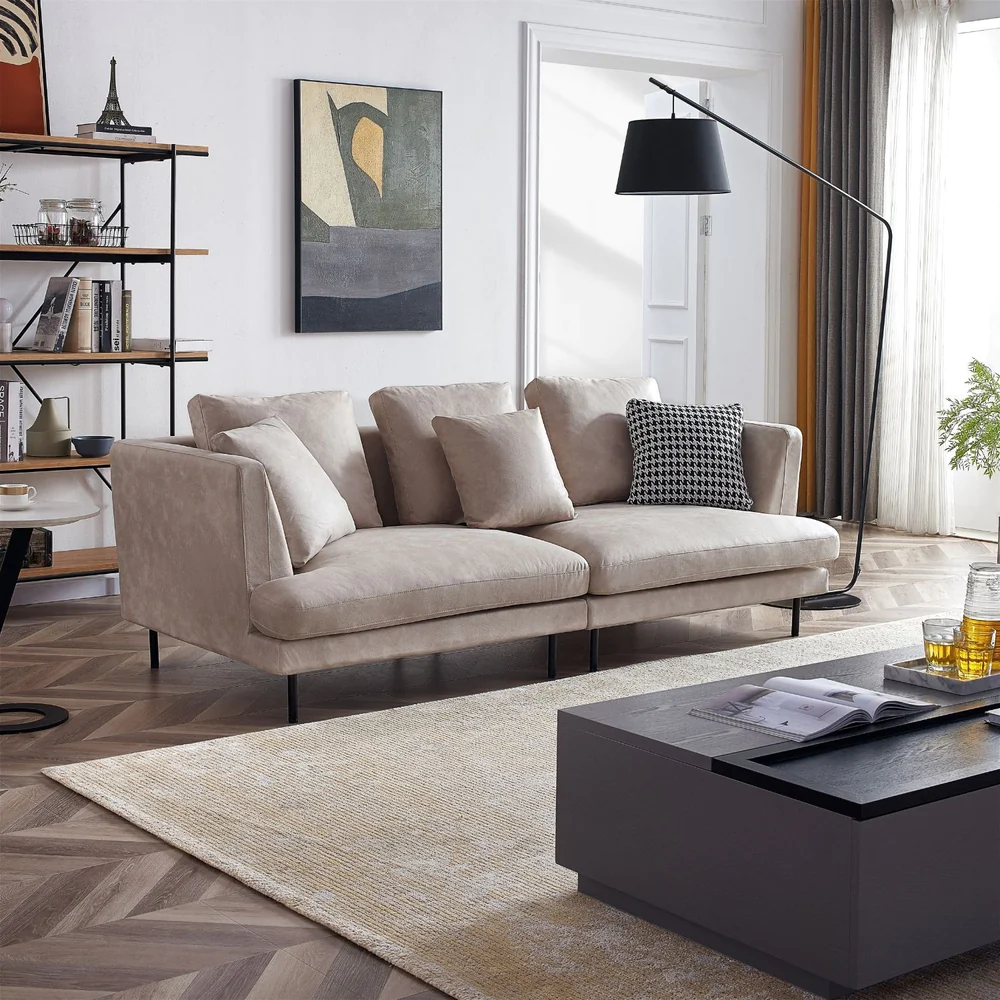 Material: solid wood sofa frame, high density foam, fabric covering,wooden leg