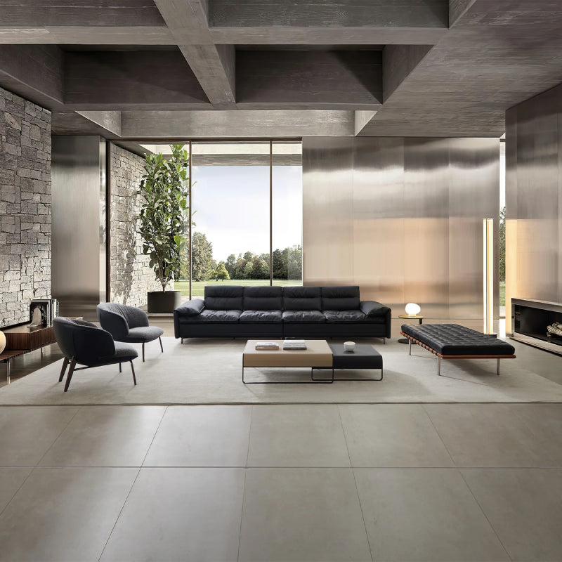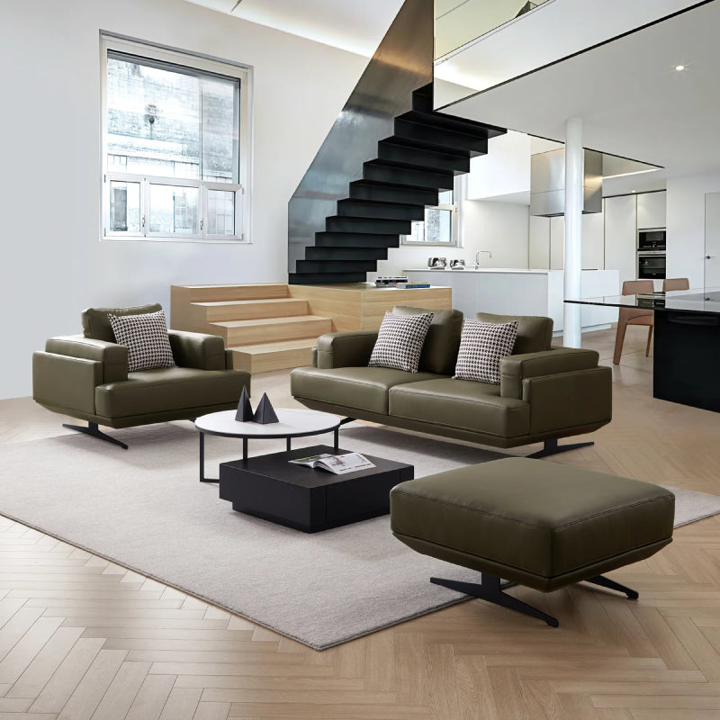 Minimalist Designs Olive Leather Couch Set