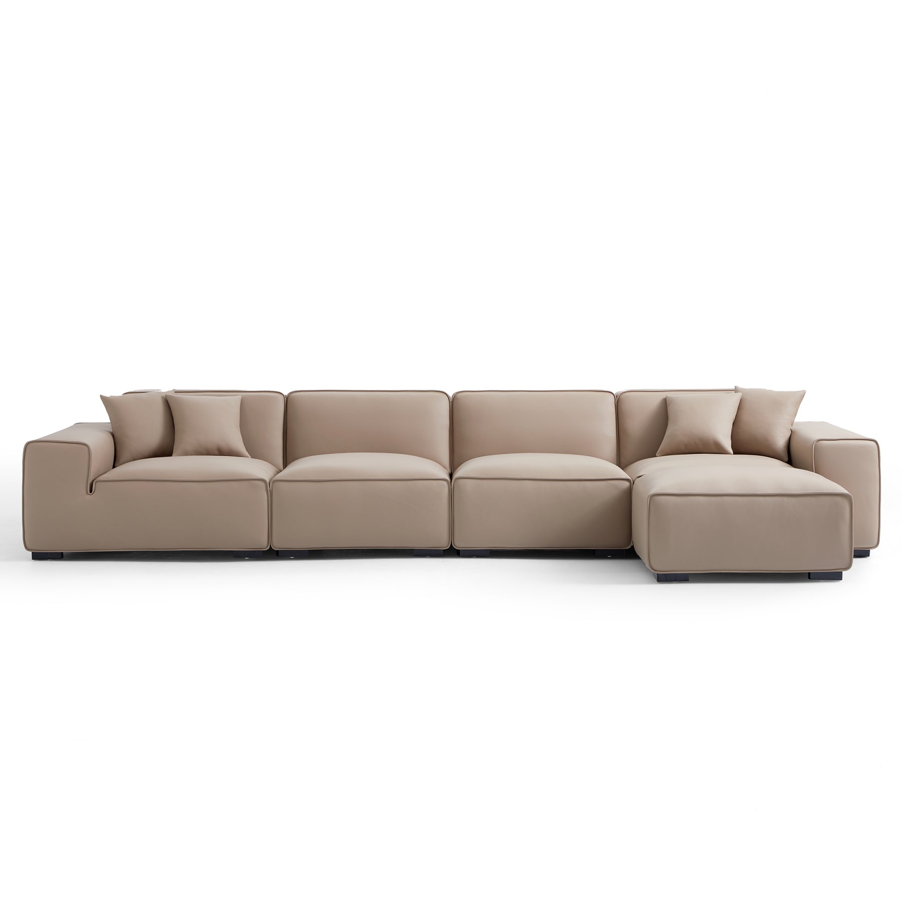 Material: larch wood sofa frame, high density foam+feather, genuine Leather covering