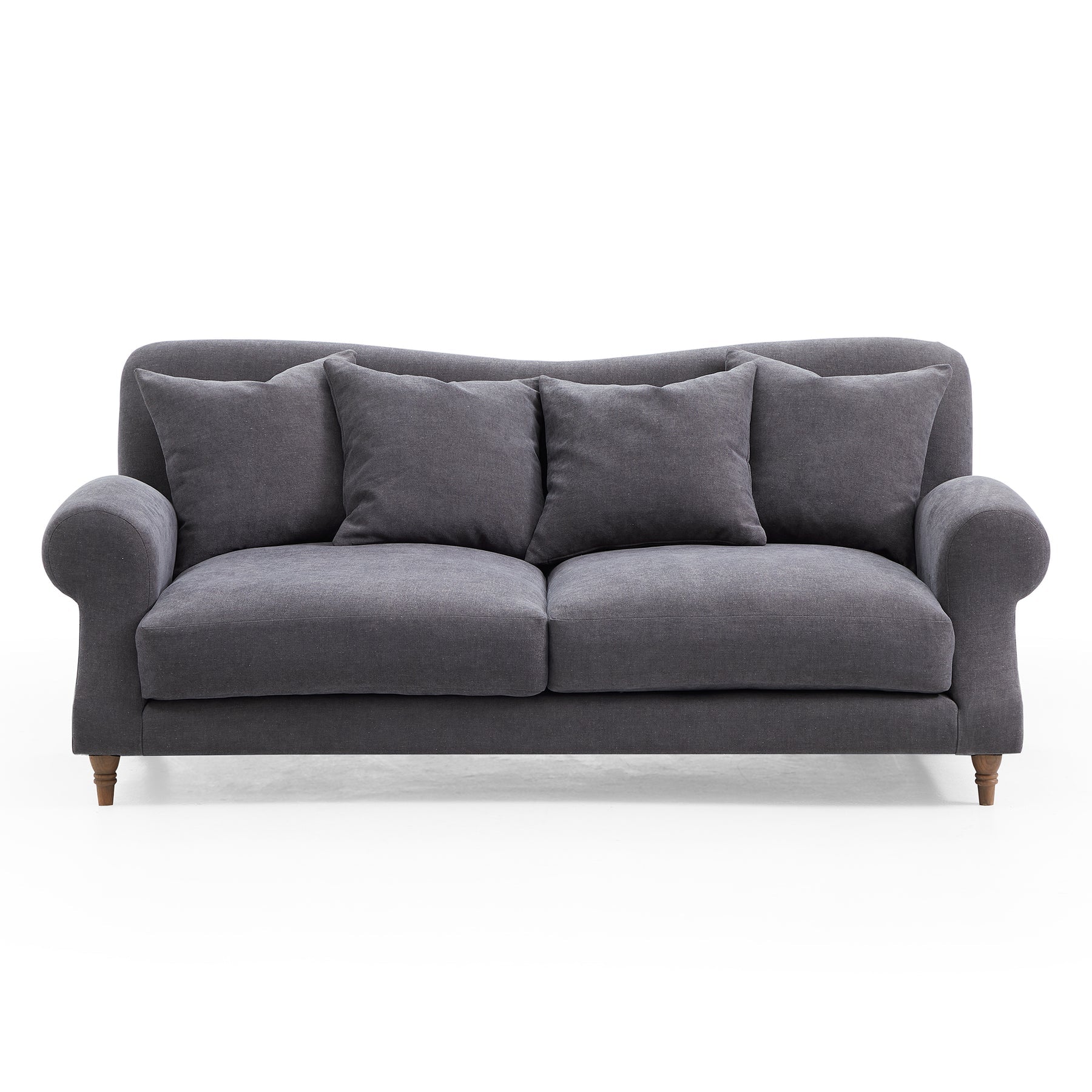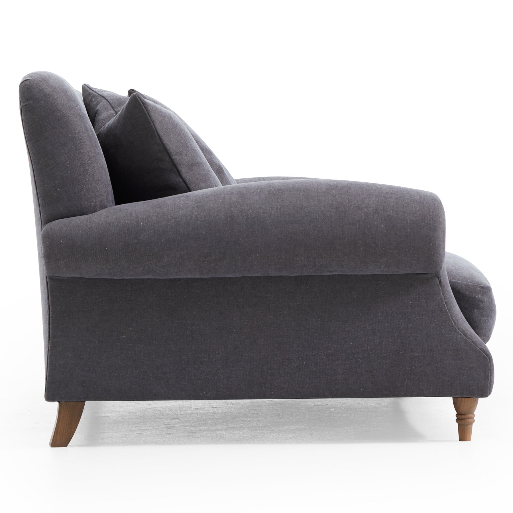 Material: wood frame, high density foam+feather, linen covering, wooden legs