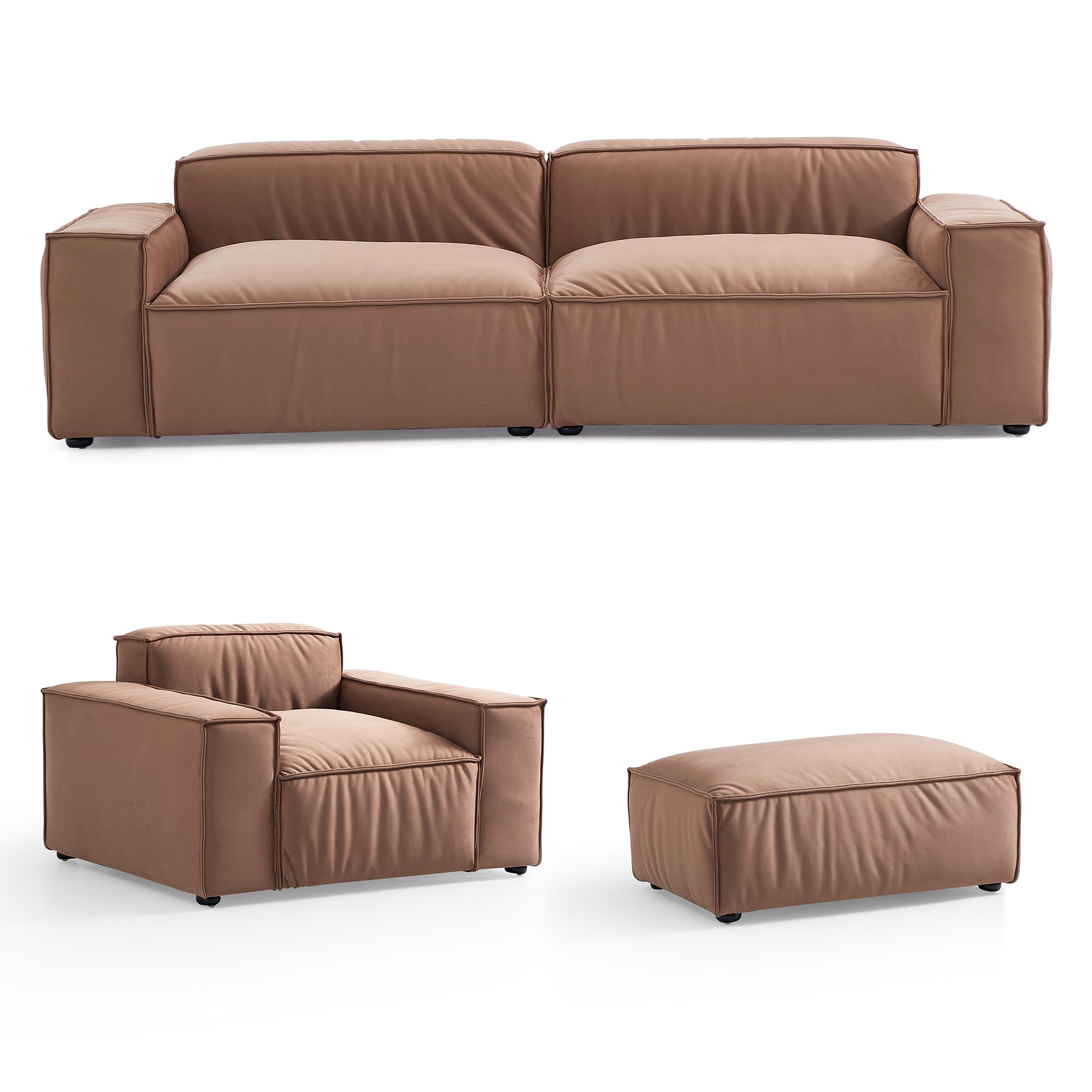 - Description: 2 seater facing left+2 seater facing right, Armchair, ottoman