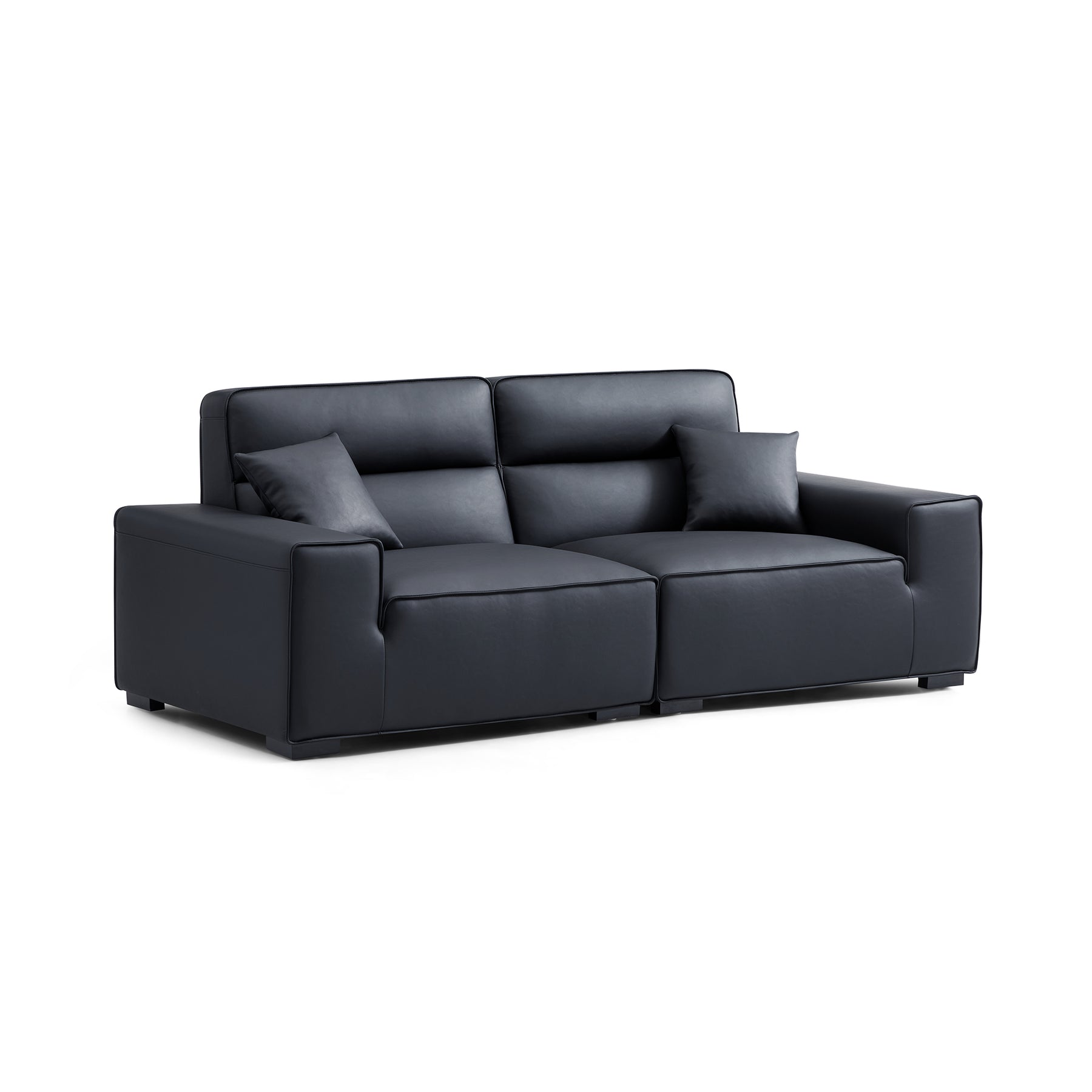 Material: Wooden sofa frame, high density foam and feather, genuine leather covering, wood legs
