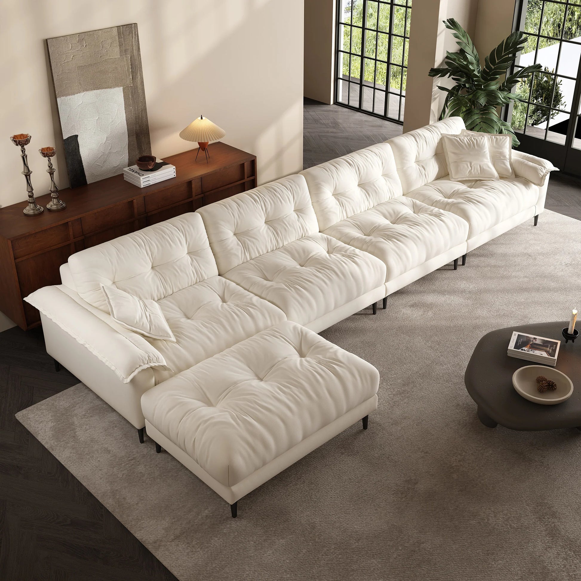 Sponge filled apartment living room modular 6 seater sofa and ottoman