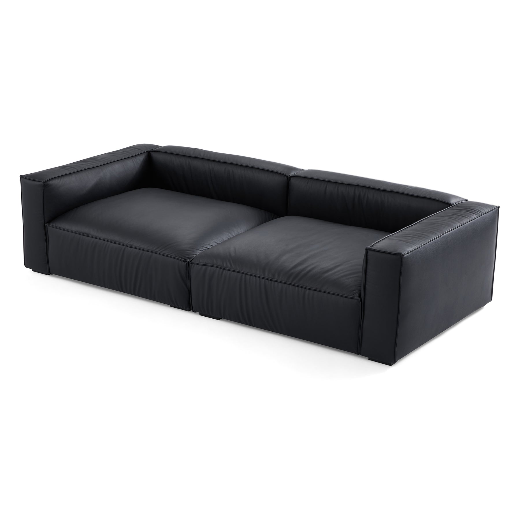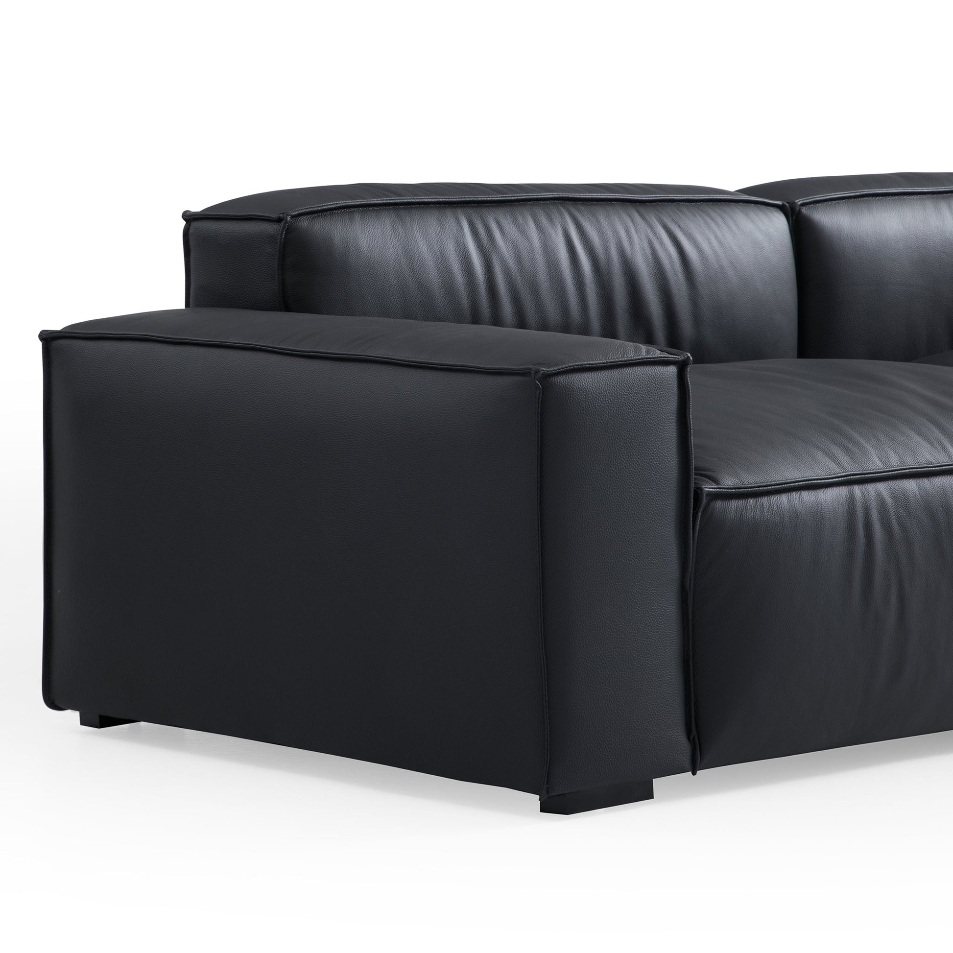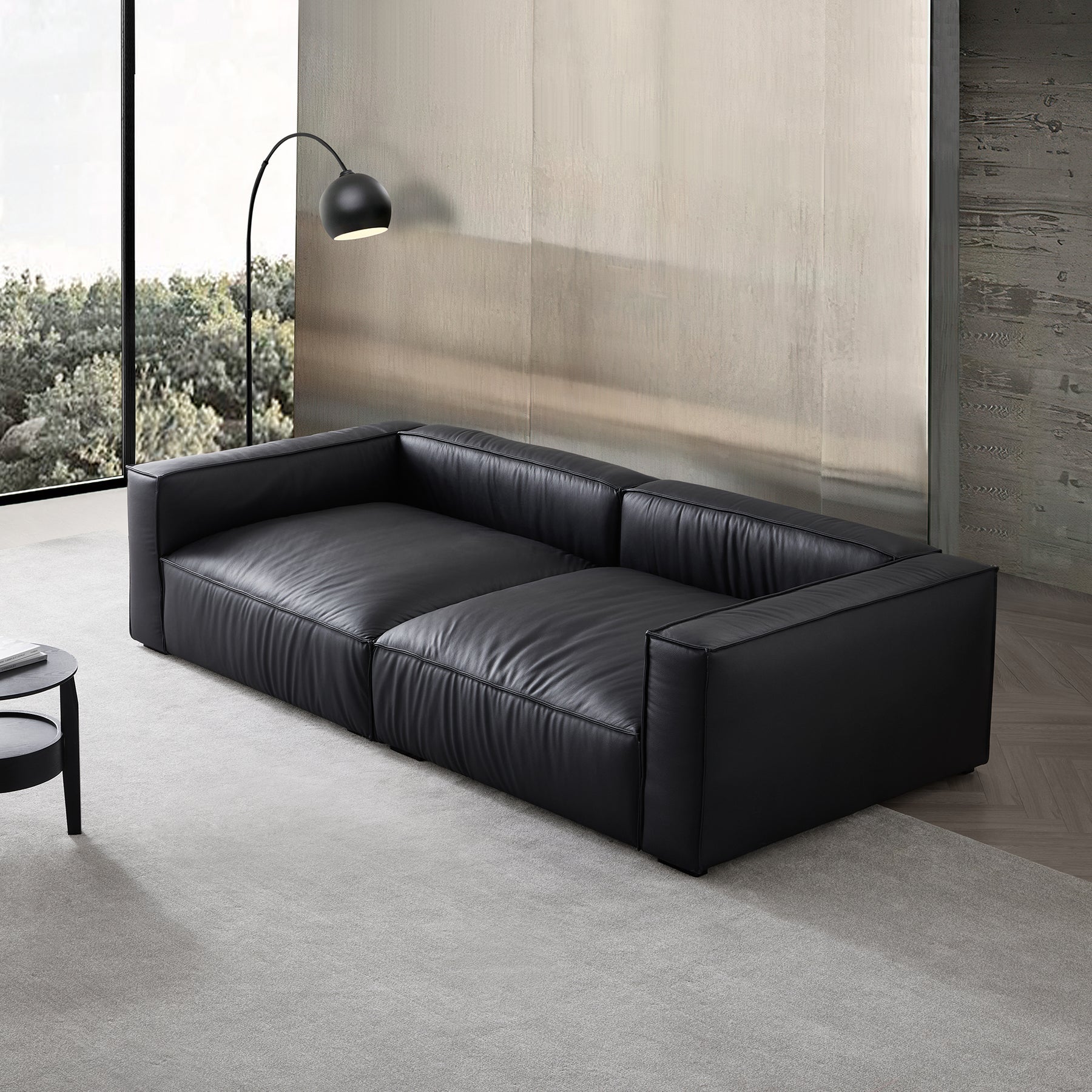Material: larch wood sofa frame, high density foam, feather, genuine leather covering, wooden legs