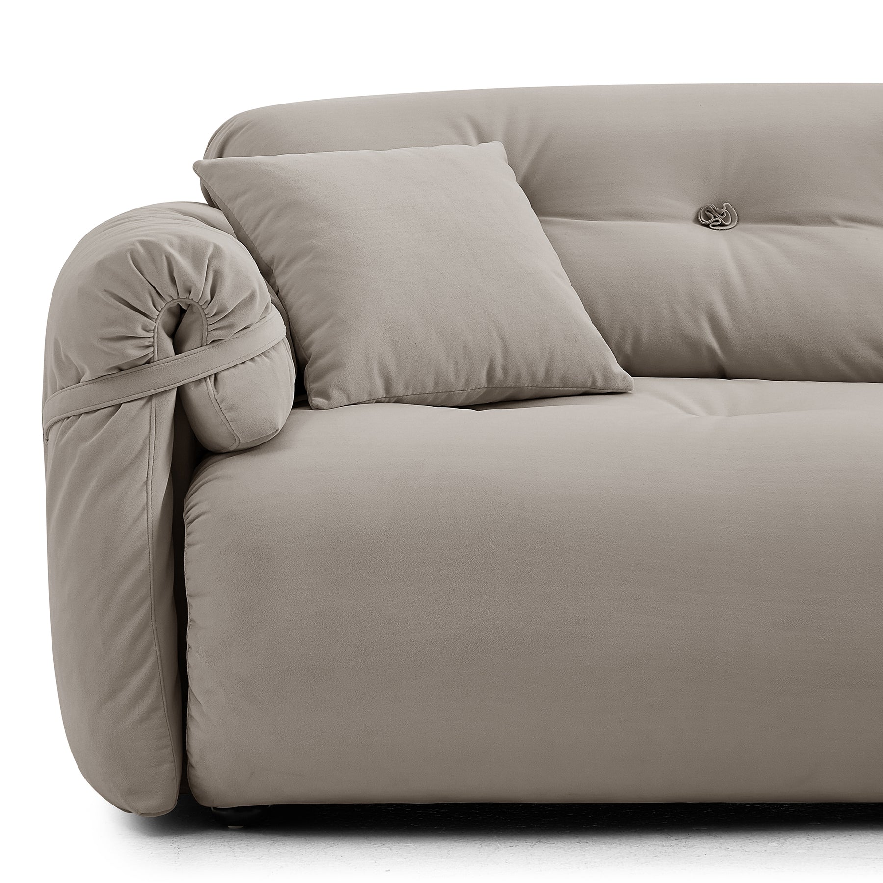4 Seater Light Grey Matt Velvet Cozy Bedroom Sofa