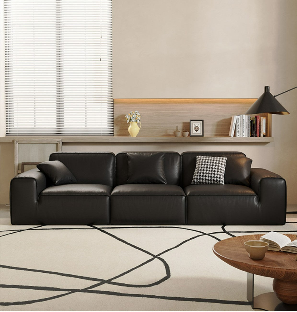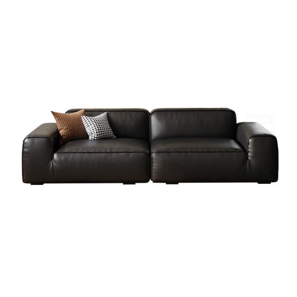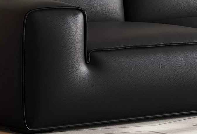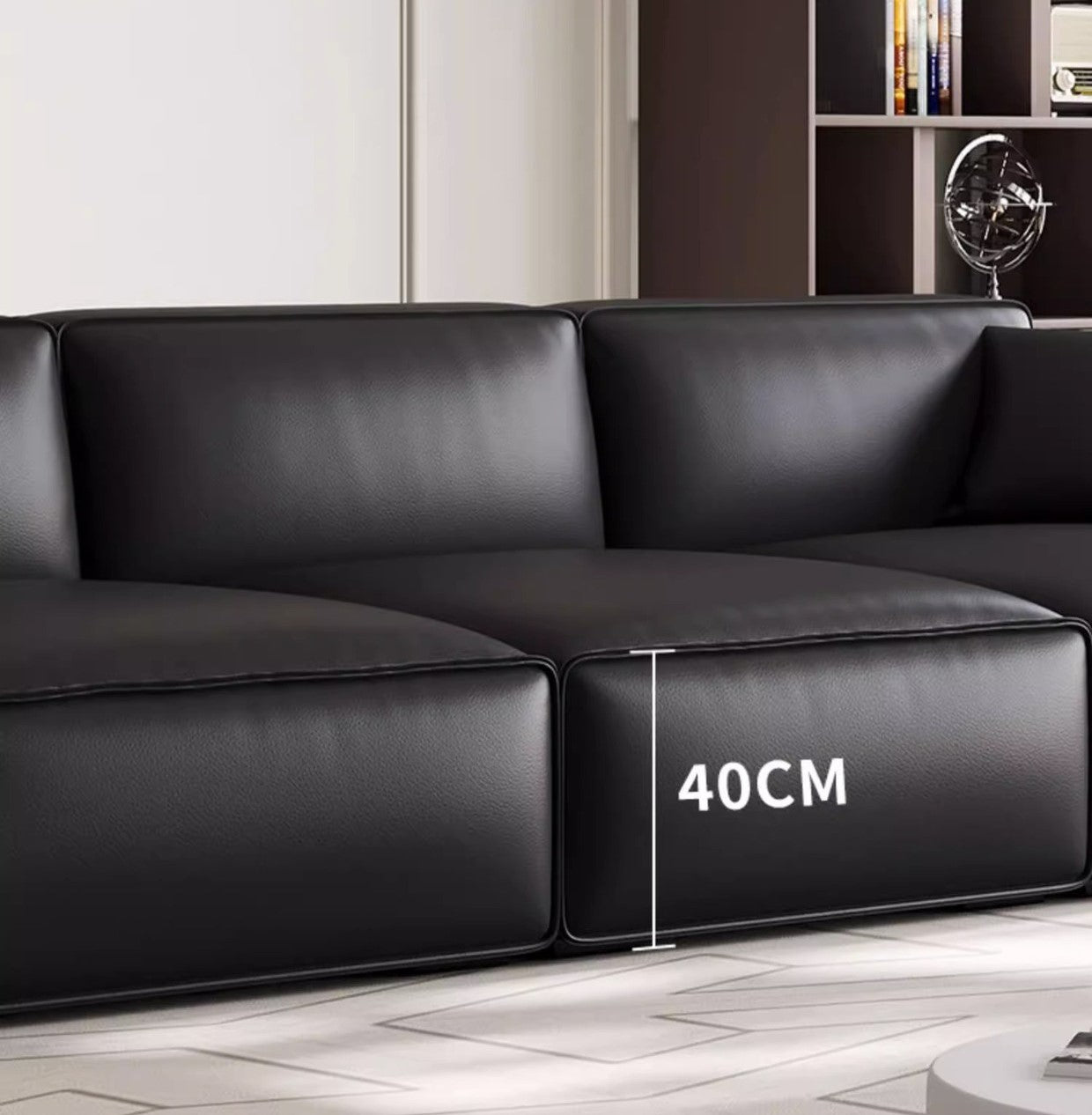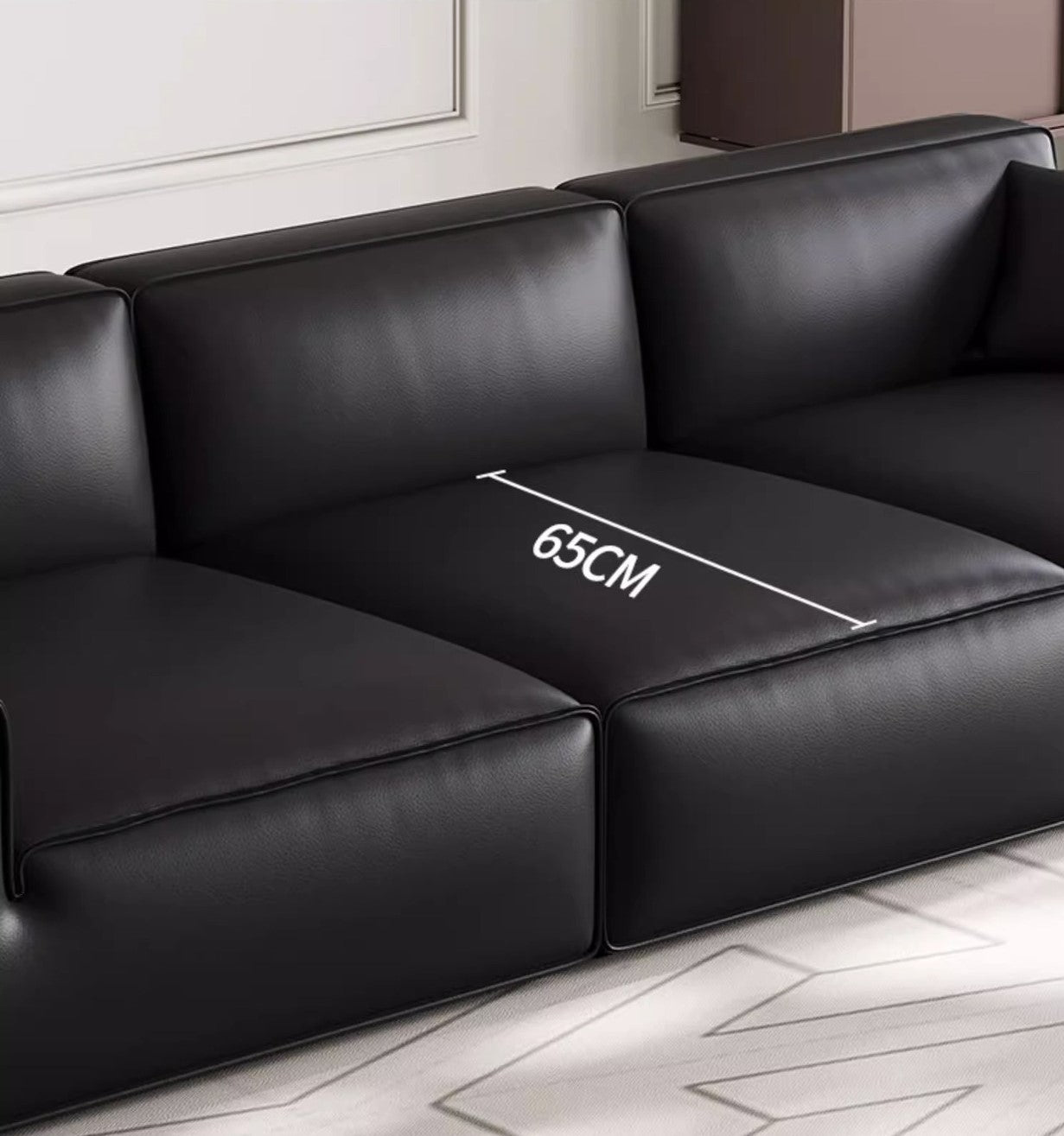 Material: solid wood sofa frame, high density foam, genuine leather covering, wooden leg