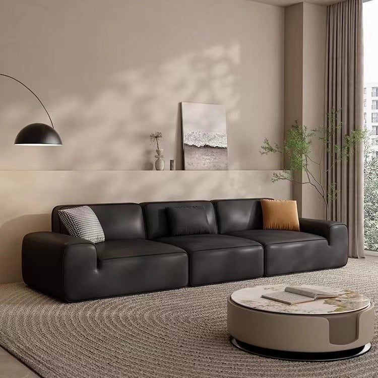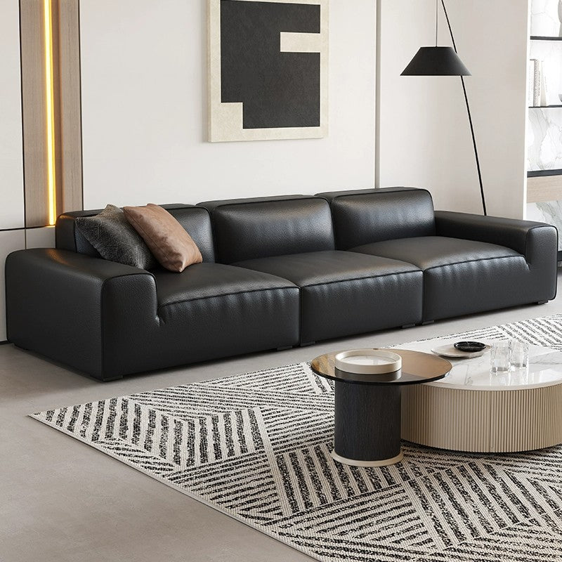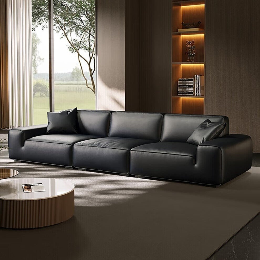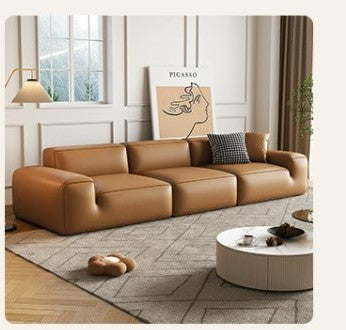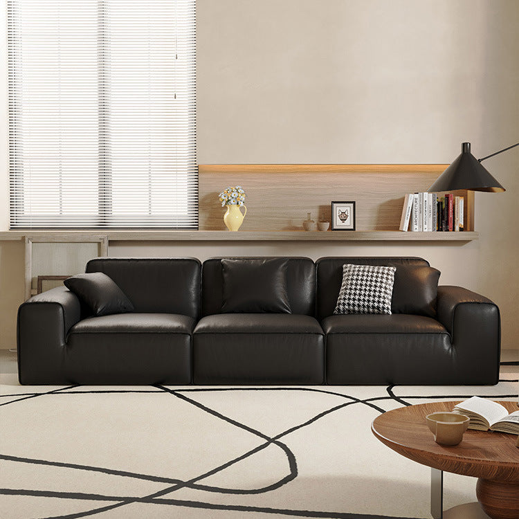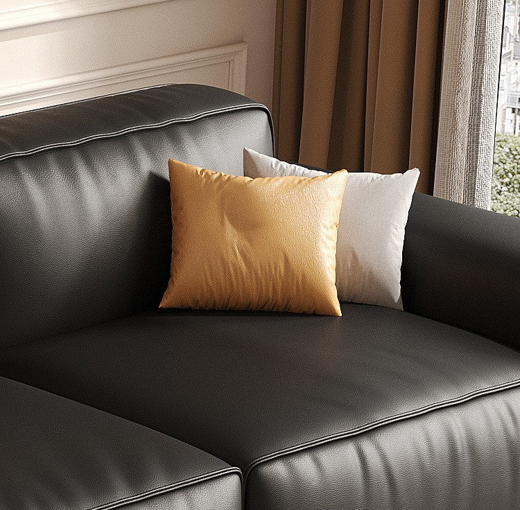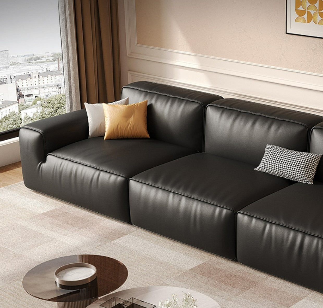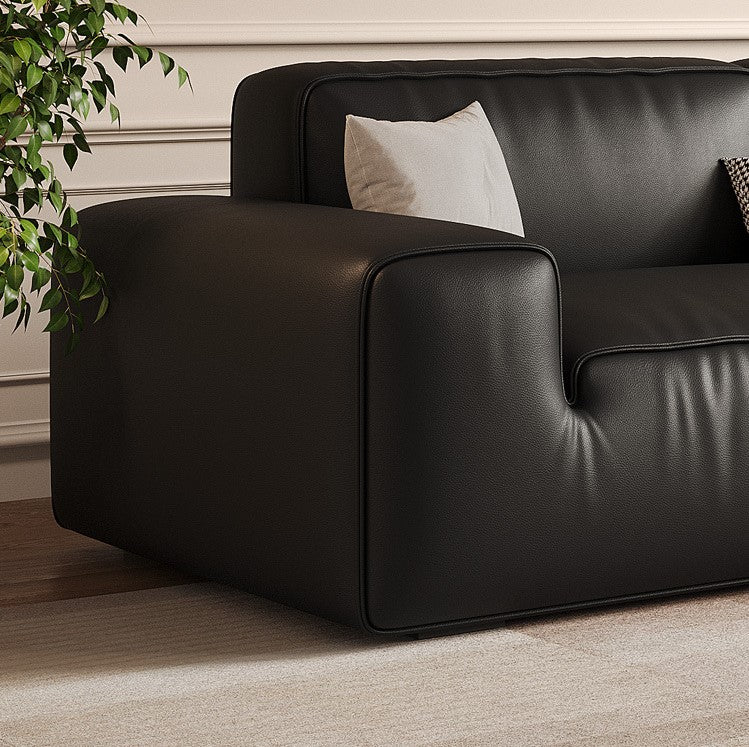 Material: solid wood sofa frame, high density foam, genuine leather covering, wooden leg