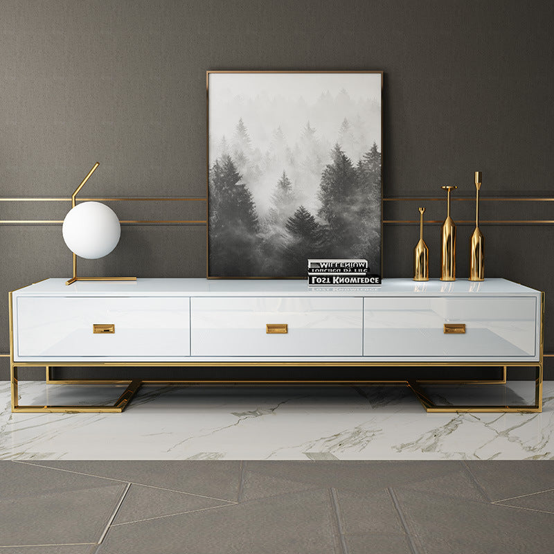 Material: Tempered Glass Table Top + E1 MDF + Solid Wood Drawer + Stainless Steel Legs