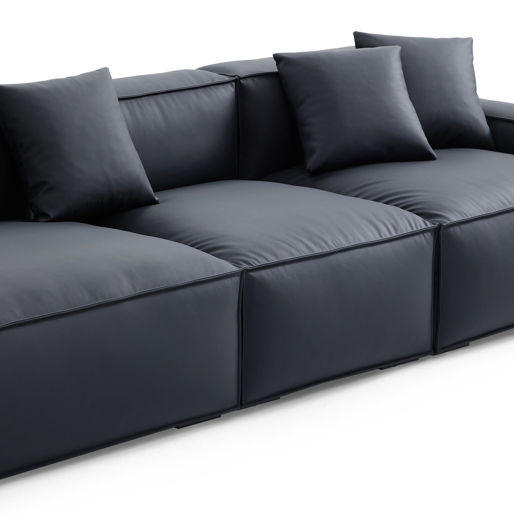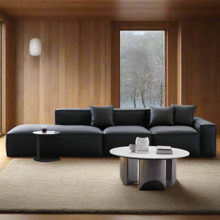 Material: wood frame, high density foam, geniune leather covering, wooden legs