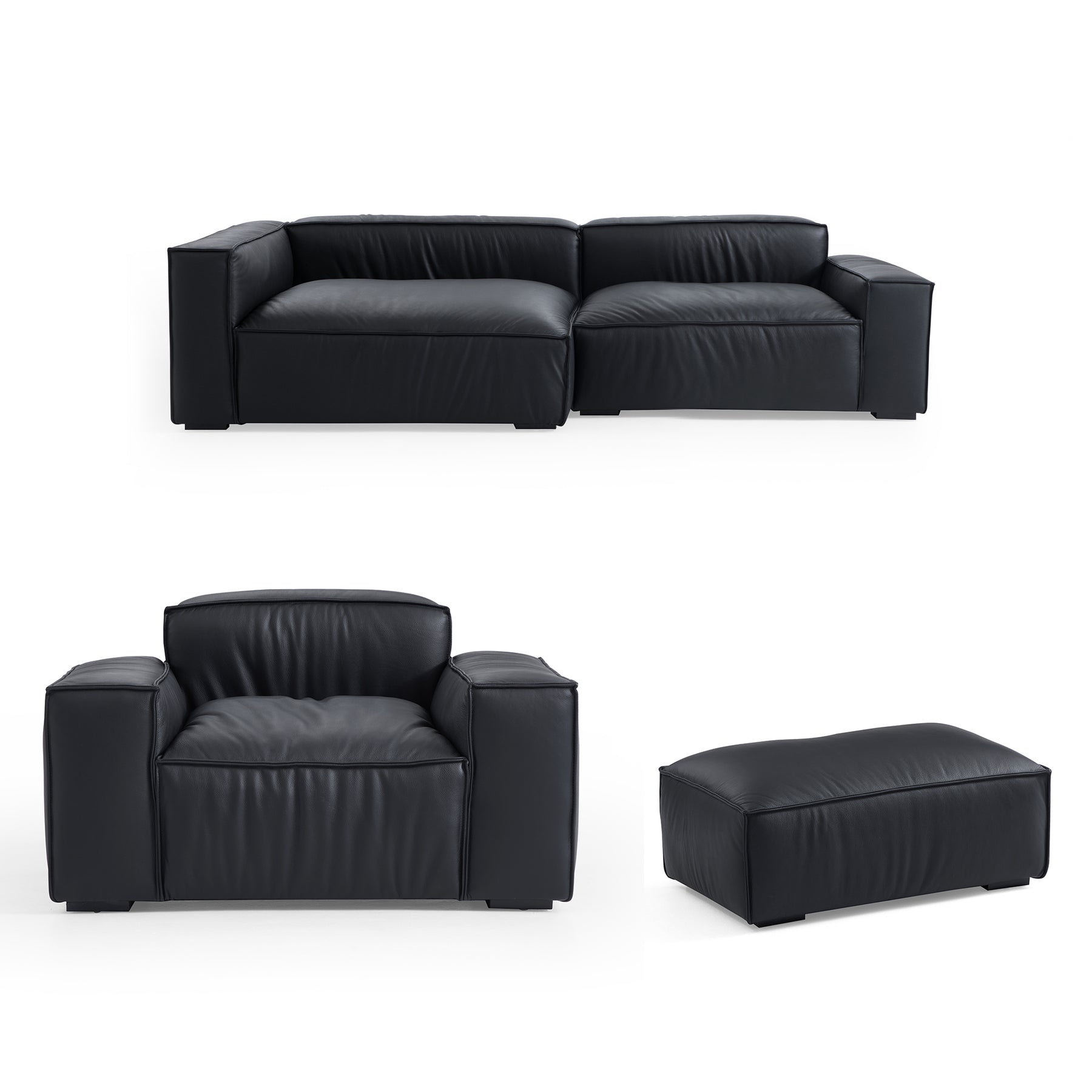 Living Room Black Genuine Leather Sectional Sofa Set