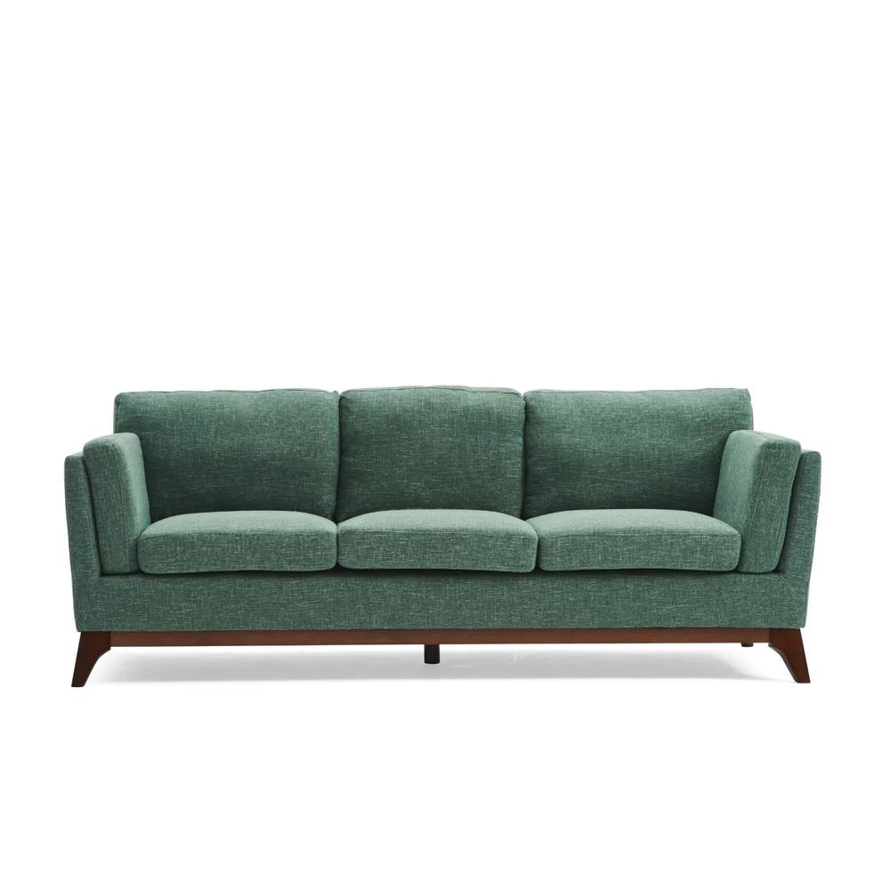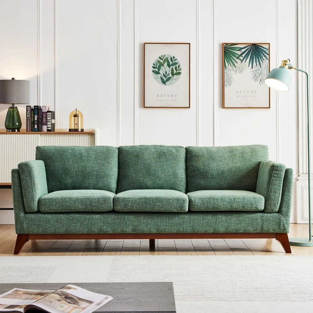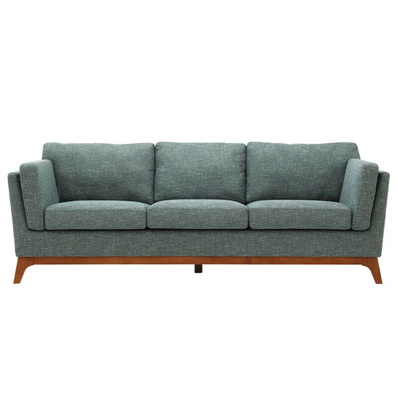Material: solid wood sofa frame, high density foam, fabric covering, wooden leg