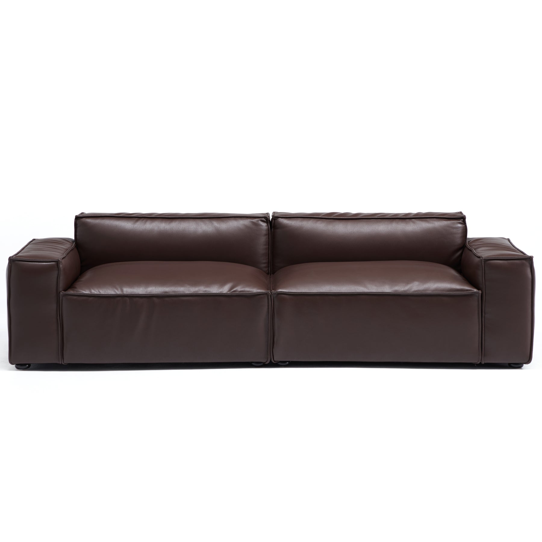I-Shaped 4-Seater Genuine Leather Modular Sofa with Wide Sofa Cushion